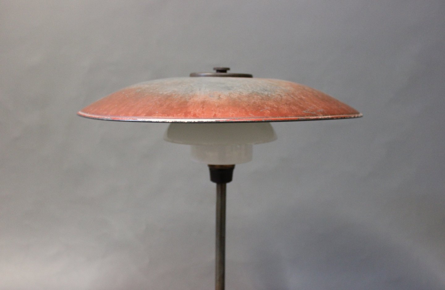 PH 3,5/2,5 tablelamp from the 1930s designed by Poul Henningsen and manufactured by Louis Poulsen. The lamp is of opaline glass and burnished brass.