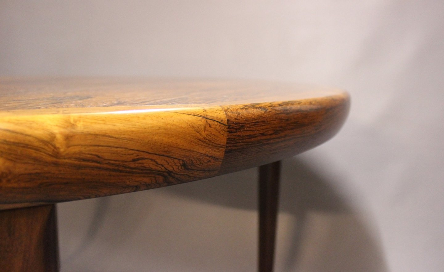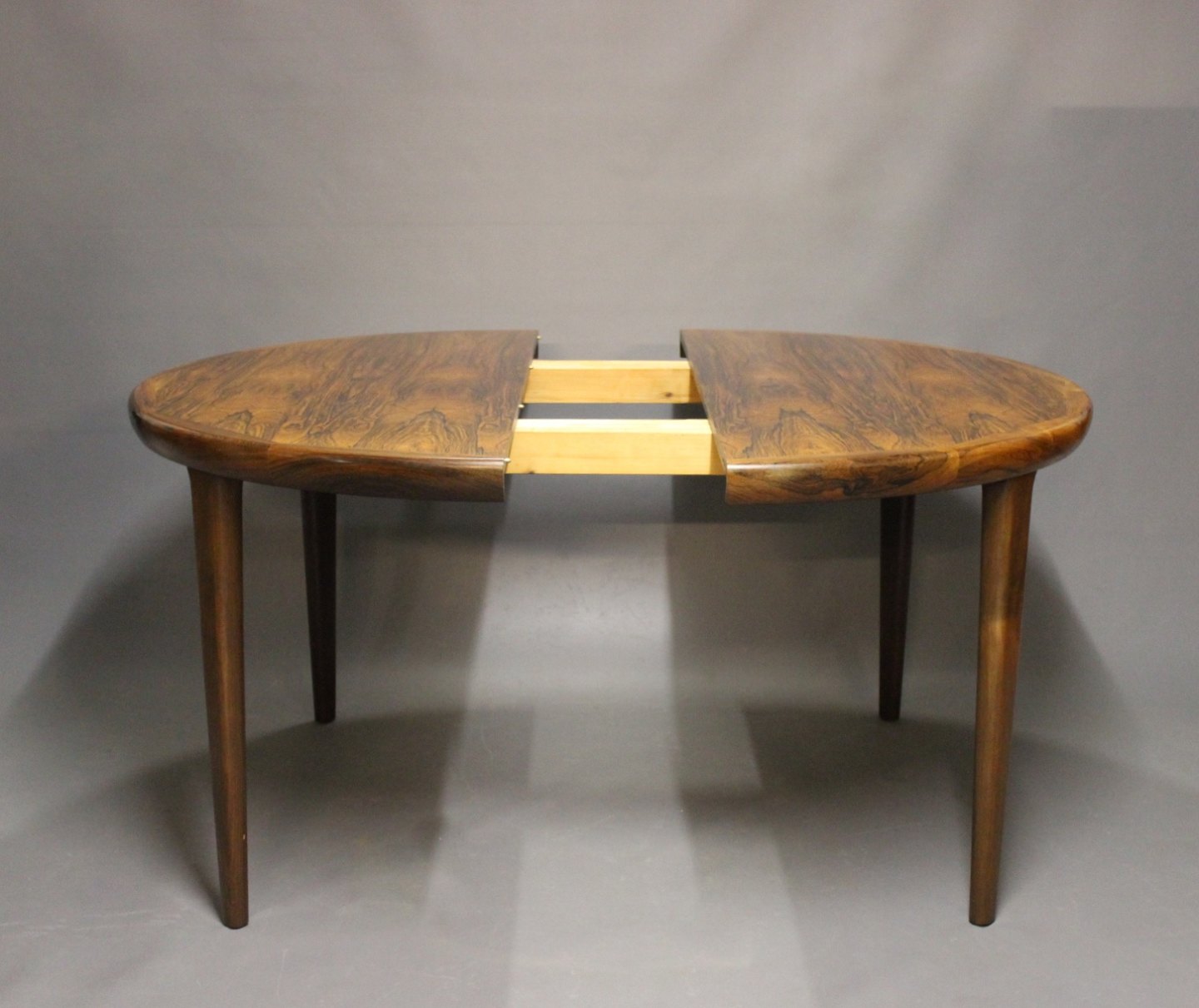 SoldDining room table in rosewood designed by Arne Vodder and from the 1960s. The table has two extenion leaves and they can be colored in to match the table.