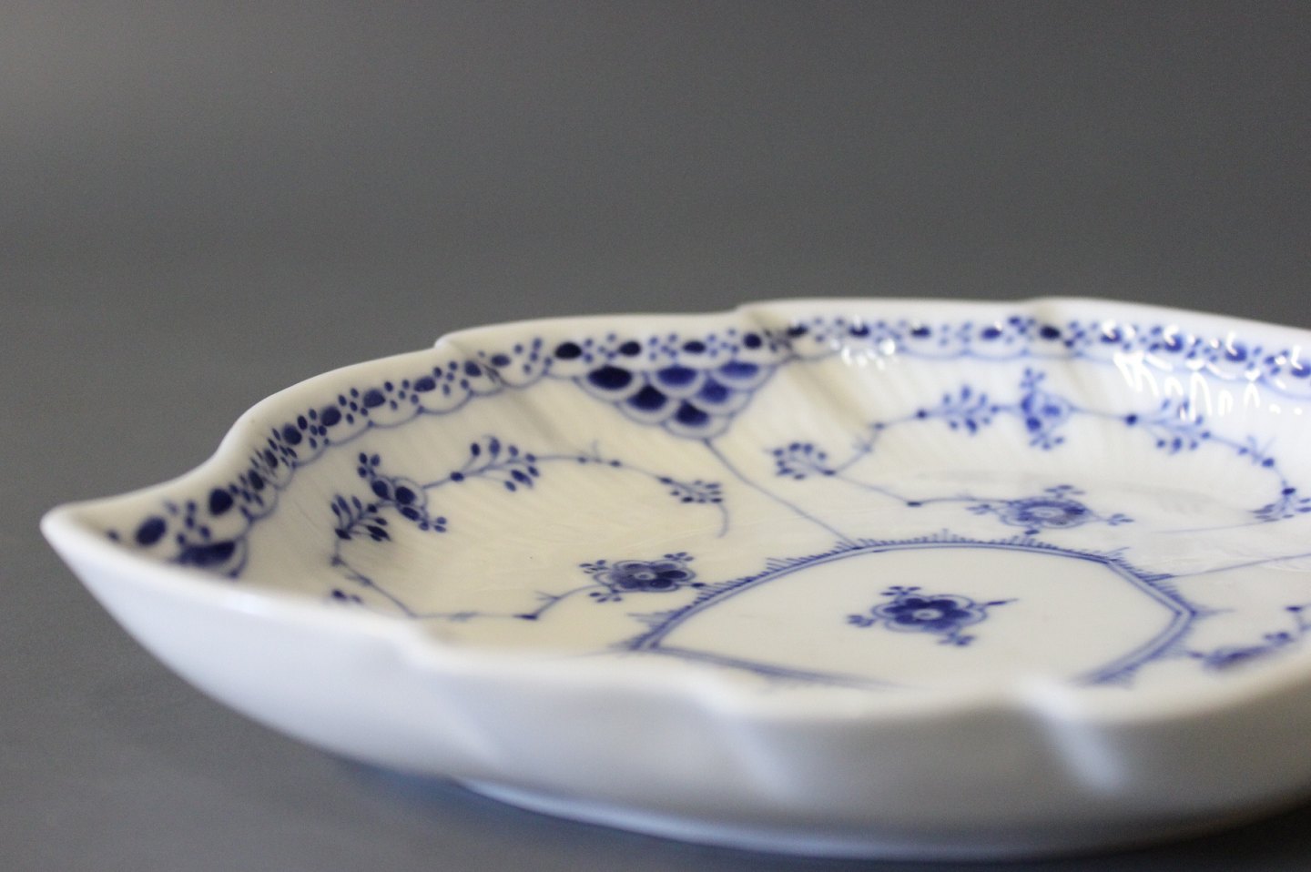 SoldRoyal Copenhagen blue fluted half lace leaf shaped dish, no.: 1/547.