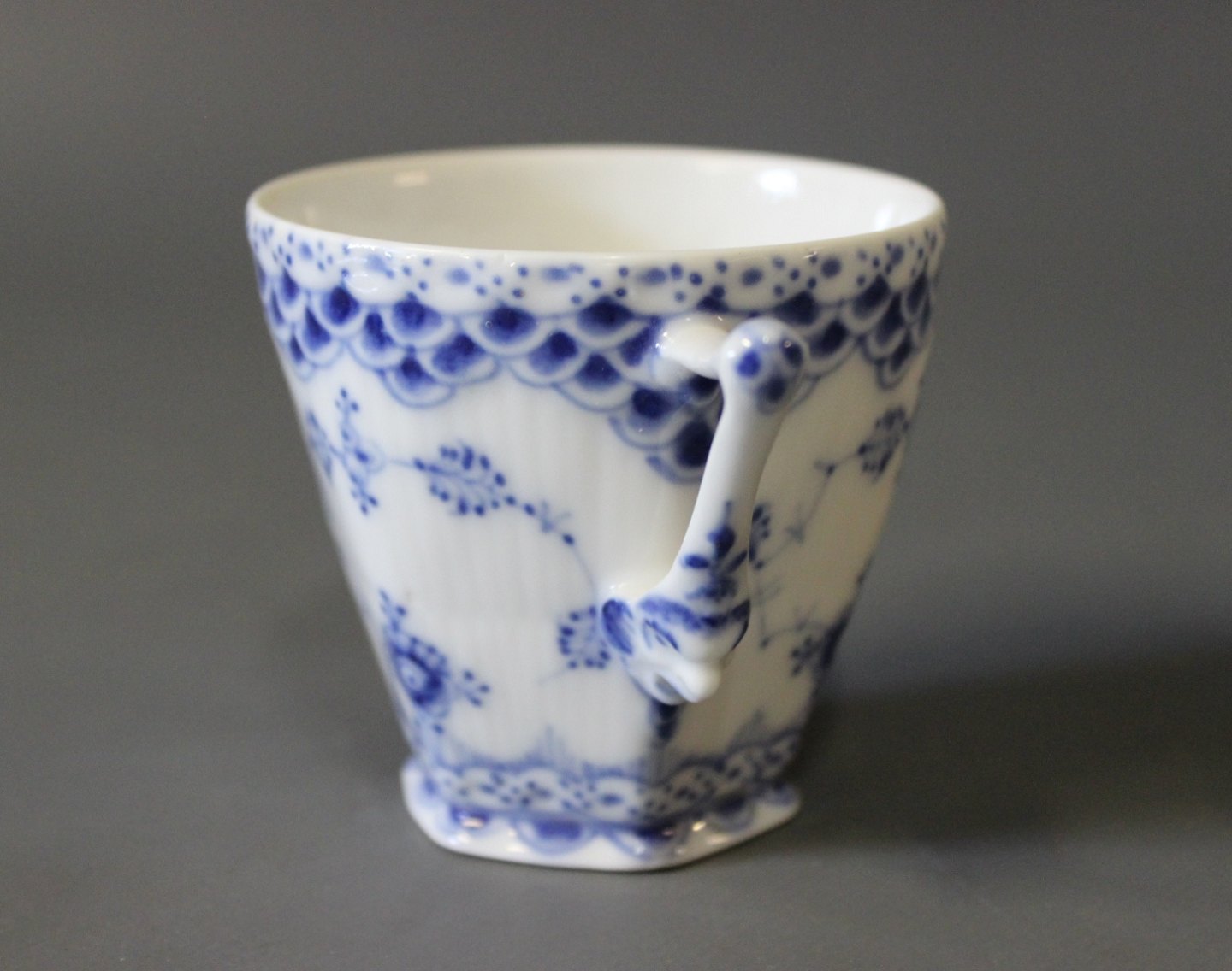 Royal Copenhagen blue fluted lace coffecup with saucer, nr.: 1/1036.