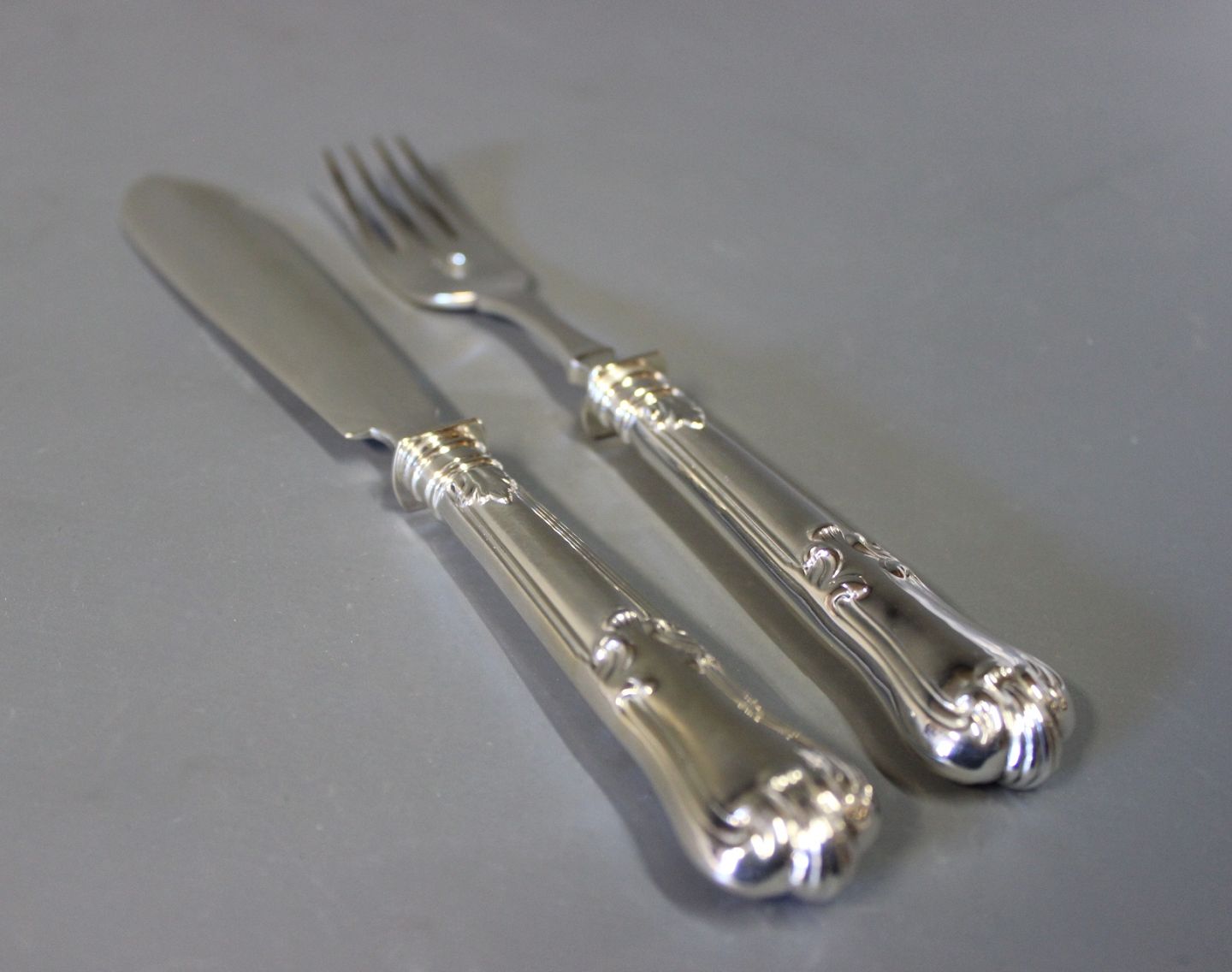 A set of fish cutlery consisting of a knife and fork, hallmarked silver. Ask for number in stock.