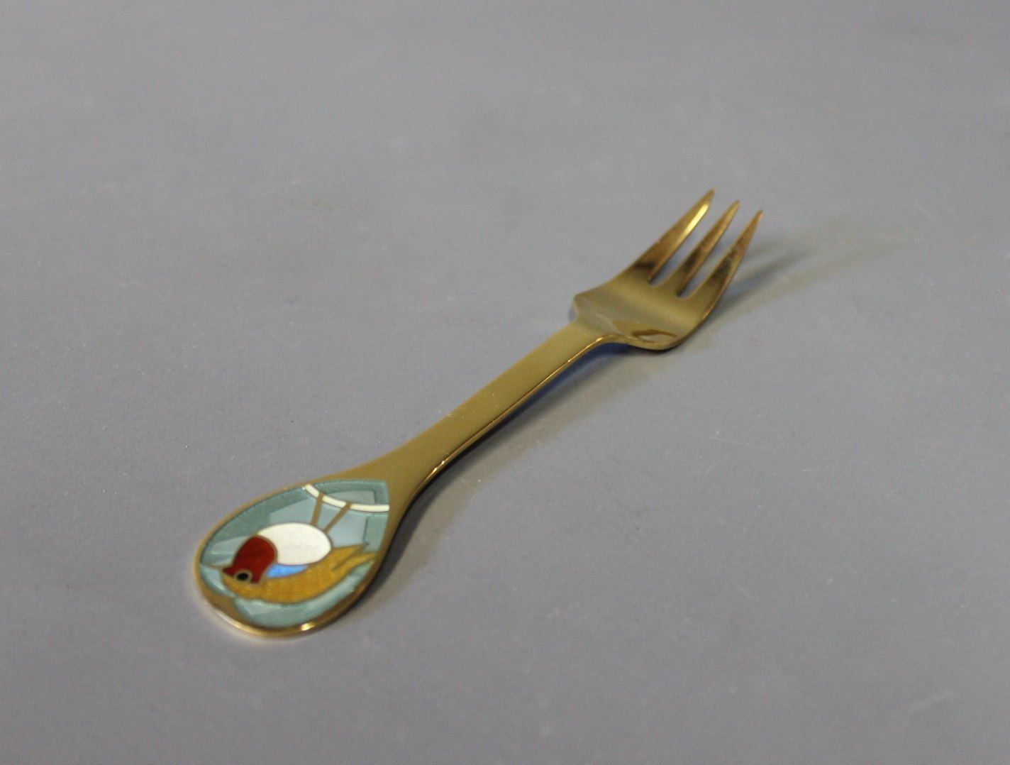 A. Michelsen christmas coffespoon and cake fork, Robin - 1981 by Falke Bang.