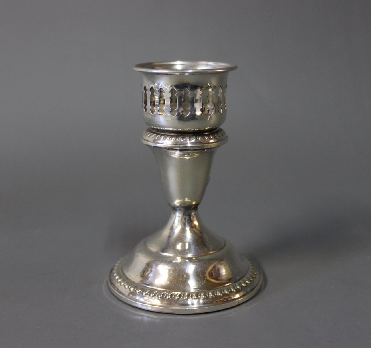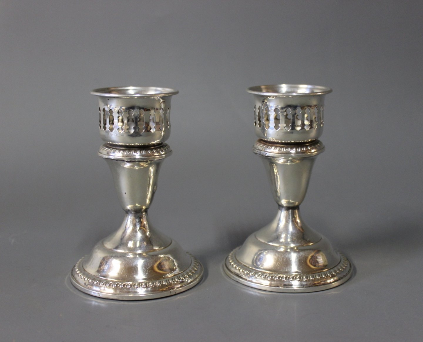 A pair of low simply decorated in sterling silver.