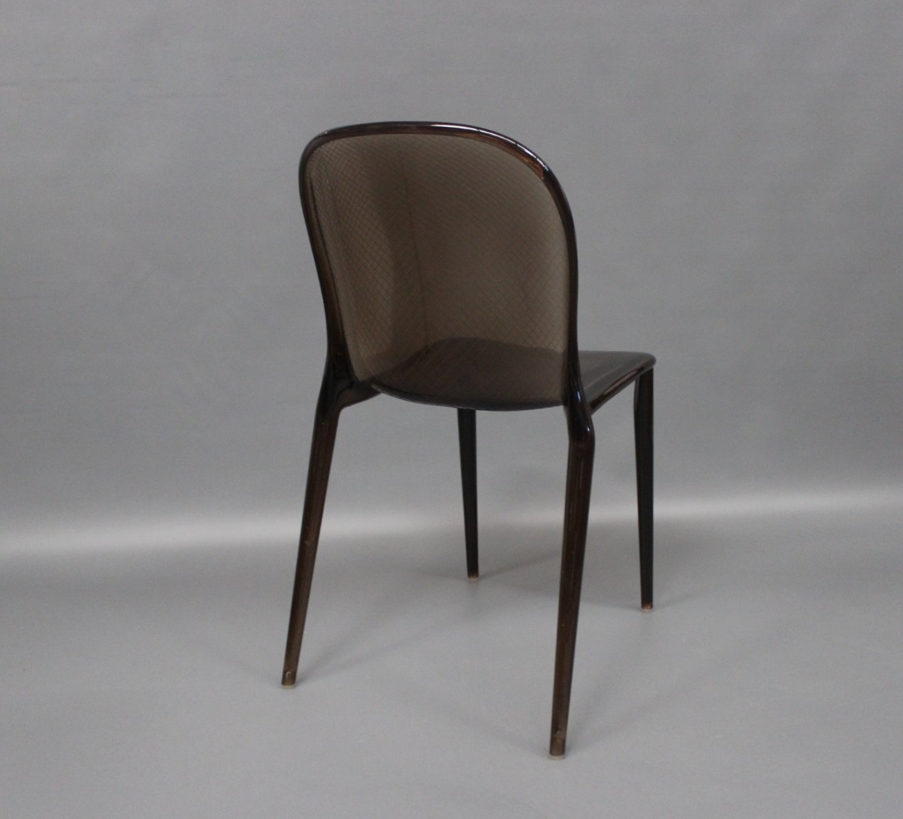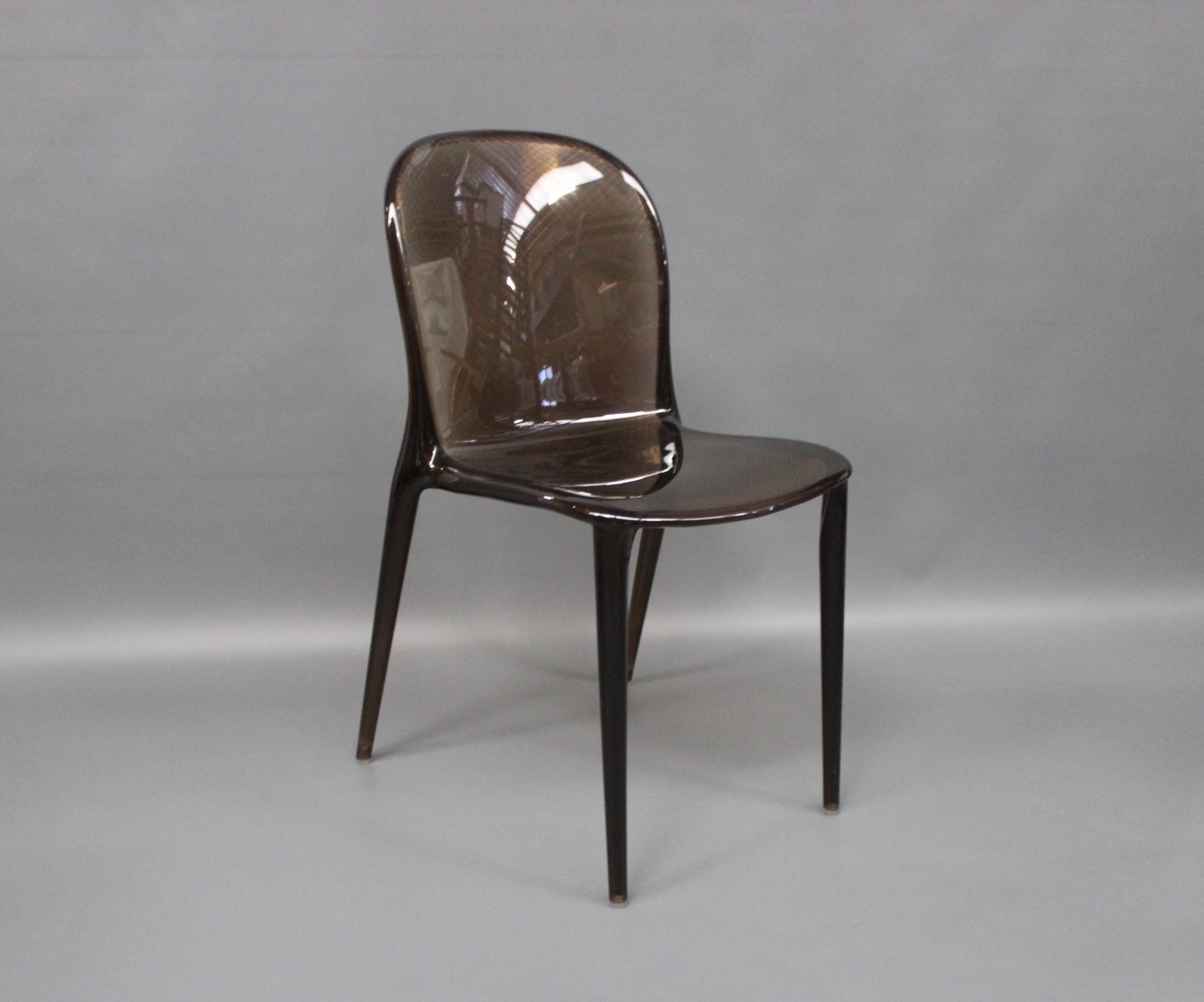 SoldDifferent colored Thalya chairs of polycarbonate designed by Patrick Jouin for Kartell. The chair has rounded edges and an unique checkered pattern on seat and back.
