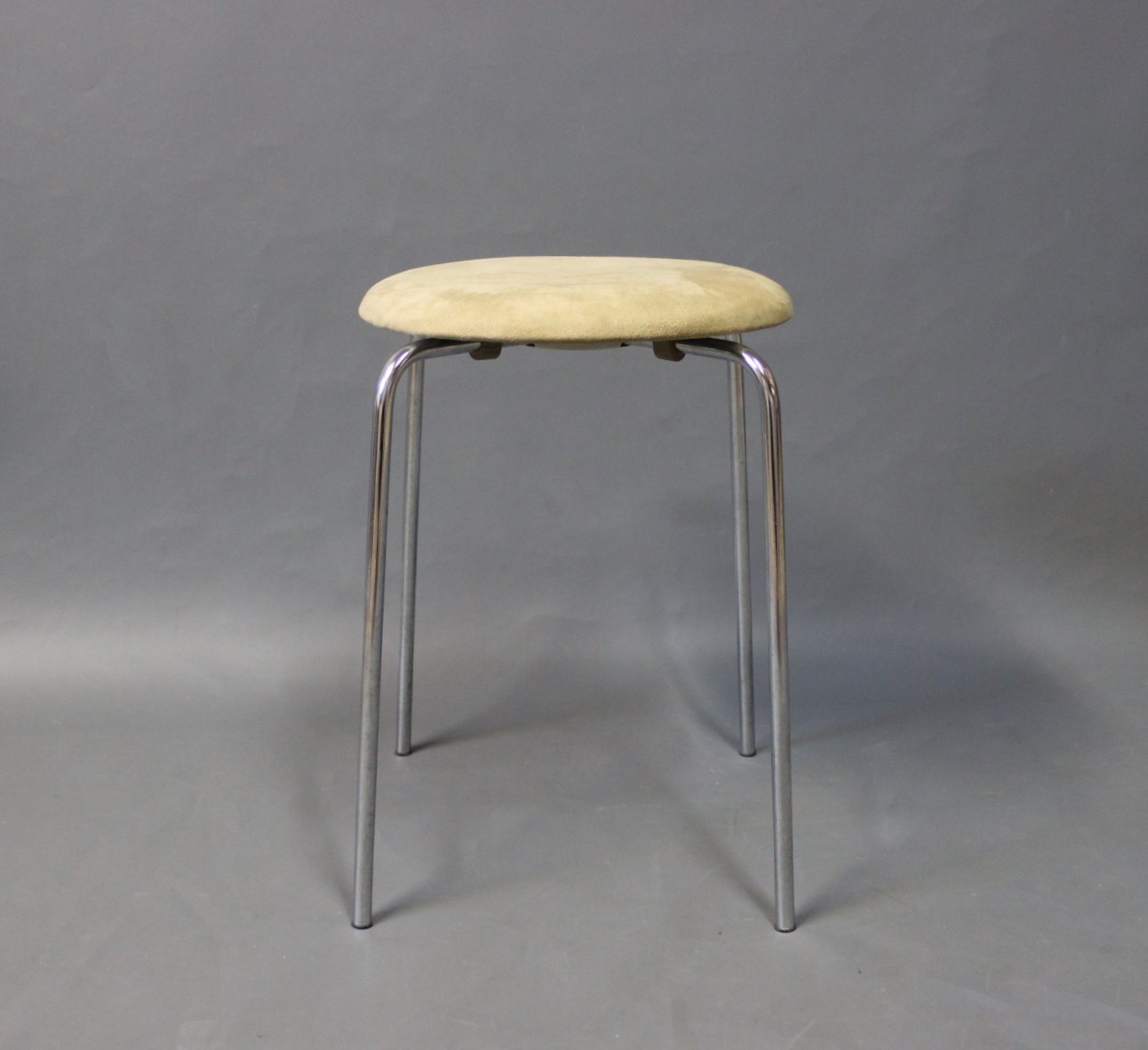 Upholstered in luxurious suede and supported by a solid base, this Dot Stool is not only a functional piece of furniture, but also a work of art in itself. It adds a touch of elegance to any decor and is a must-have for anyone who appreciates Danish design and craftsmanship.