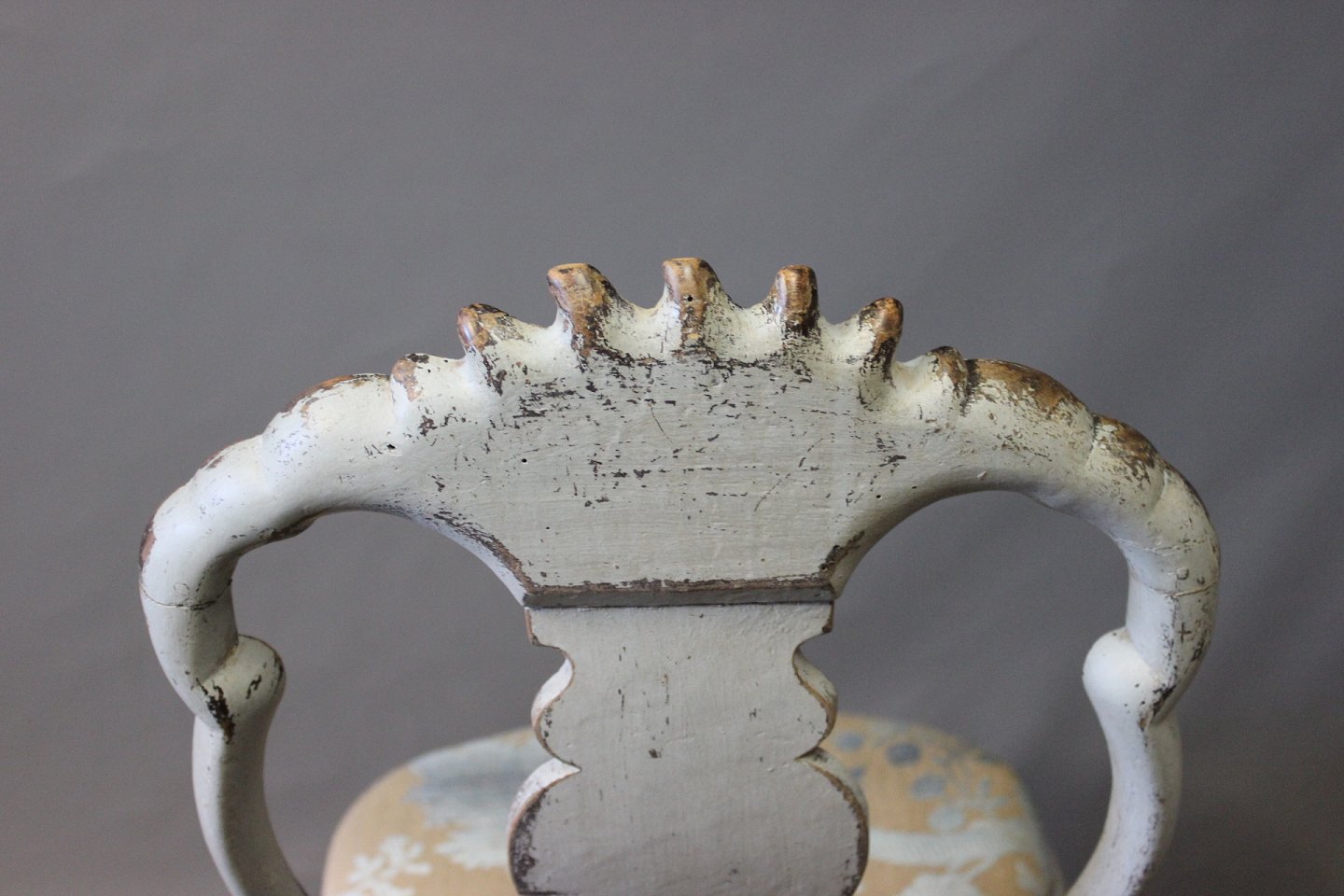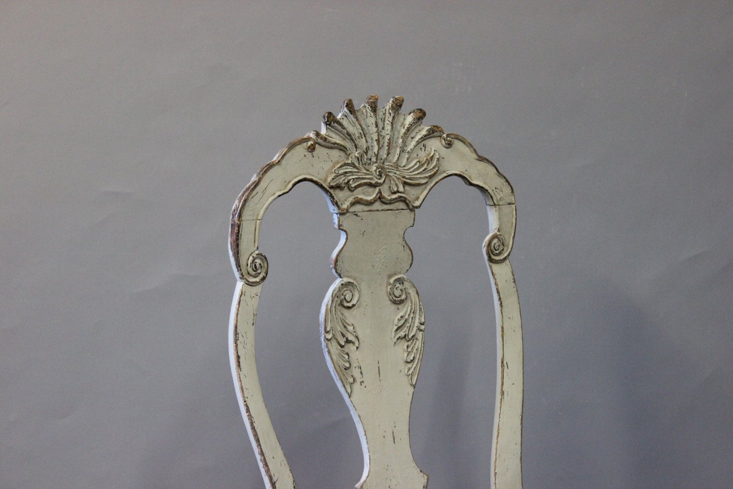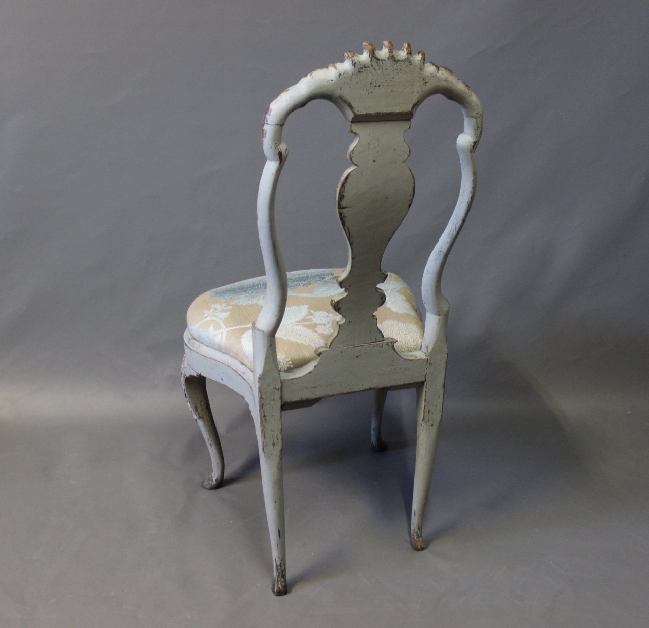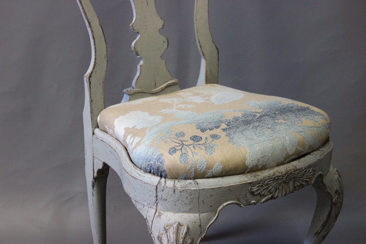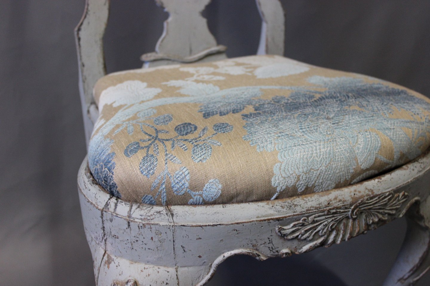 SoldGray Painted Rokokostol from 1740 with newly upholstered seat.