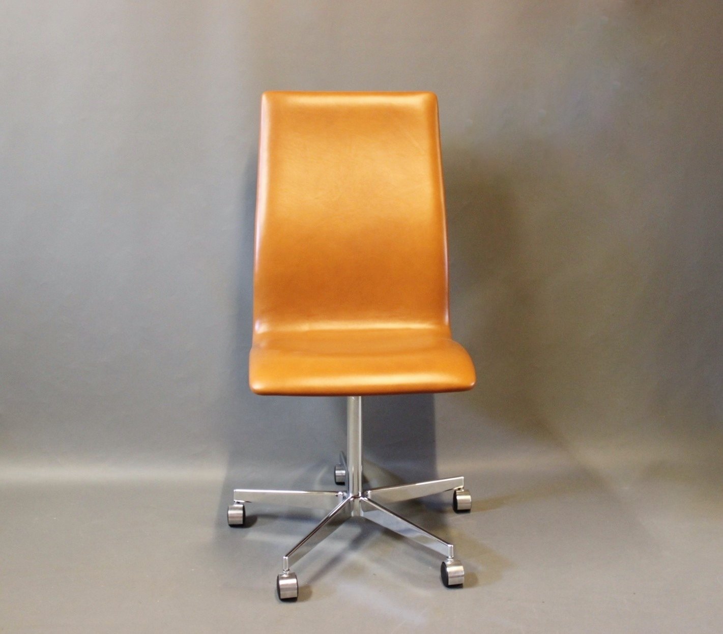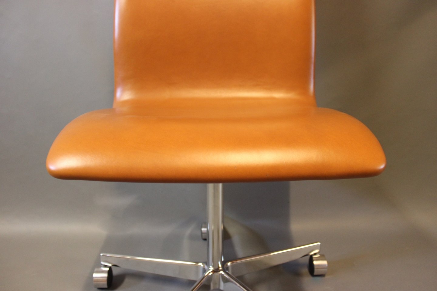 The Oxford Classic office chair, model 3193C, is an iconic example of Arne Jacobsen's remarkable contribution to modern furniture design. Designed in 1963 and produced by Fritz Hansen, this chair exudes a unique elegance and timeless appeal. With its beautiful cognac colored savannah leather upholstery and original design, the chair exudes a sense of luxury and sophistication. Arne Jacobsen's characteristic minimalist aesthetics and focus on comfort and functionality are clearly present in this chair, which forms a perfect balance between form and function. This Oxford Classic office chair will make an impressive and stylish addition to any office or home office looking for a sophisticated and comfortable seating experience.