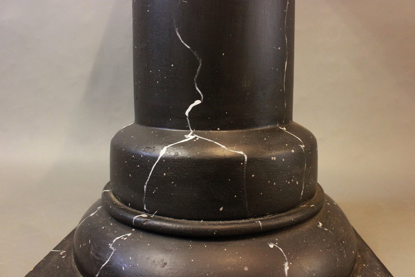 Marmoreret piedestal af sort og hvid malet træ fra omkring 1930erne.
