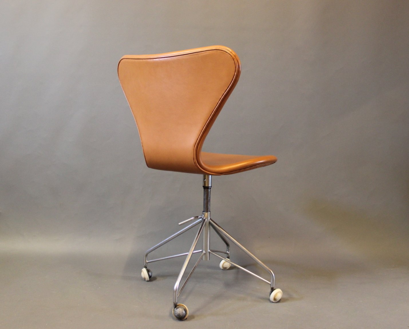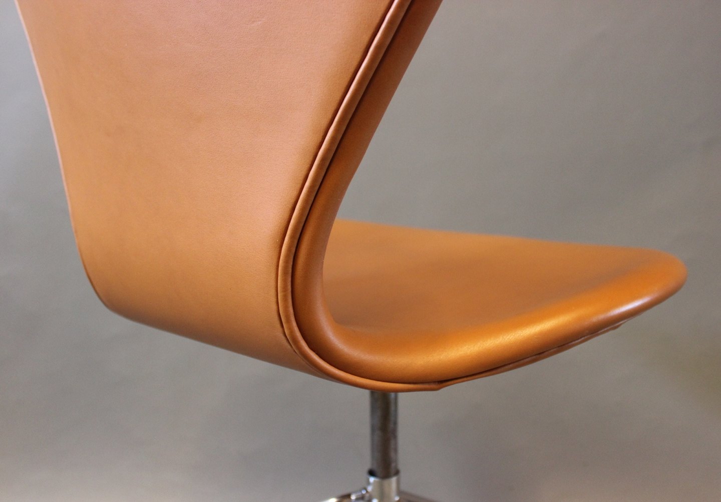 Sold"Seven" office chair, model 3117, designed by Arne Jacobsen in 1955 and manufactured by Fritz Hansen in the late 1950s. The chair has been upholstered in cognac colored elegance leather.
