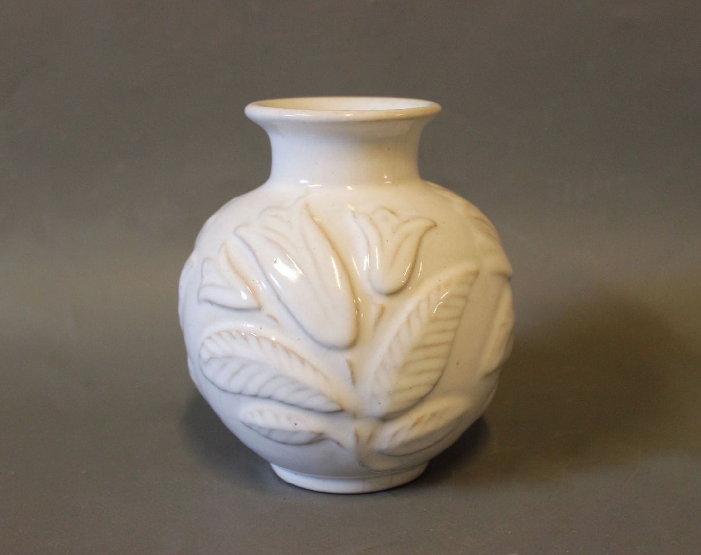 SoldWhite vase with floral motif by Michael Andersen and Son.