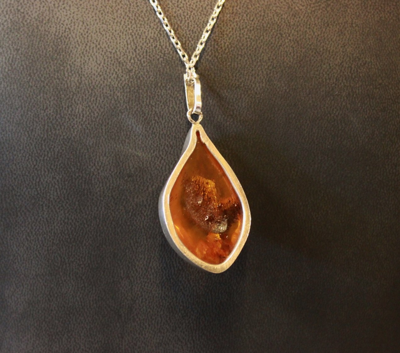 Halsvedhæng samt kæde af 925 sterling sølv og rav, stemplet HS.