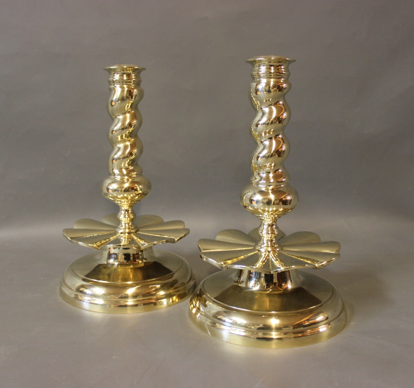 A pair of large brass candlesticks in the style baroque from around the 1840-1860s.