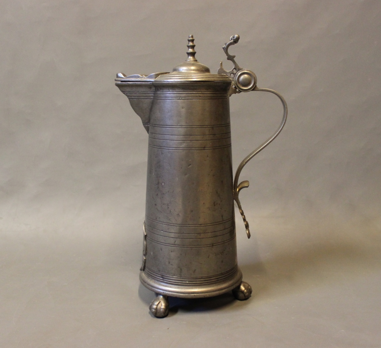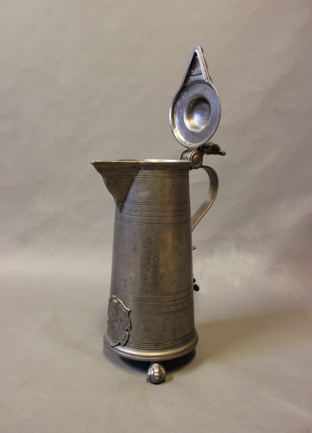 SoldLarge lidded mug in tin from Germany around the year 1780.