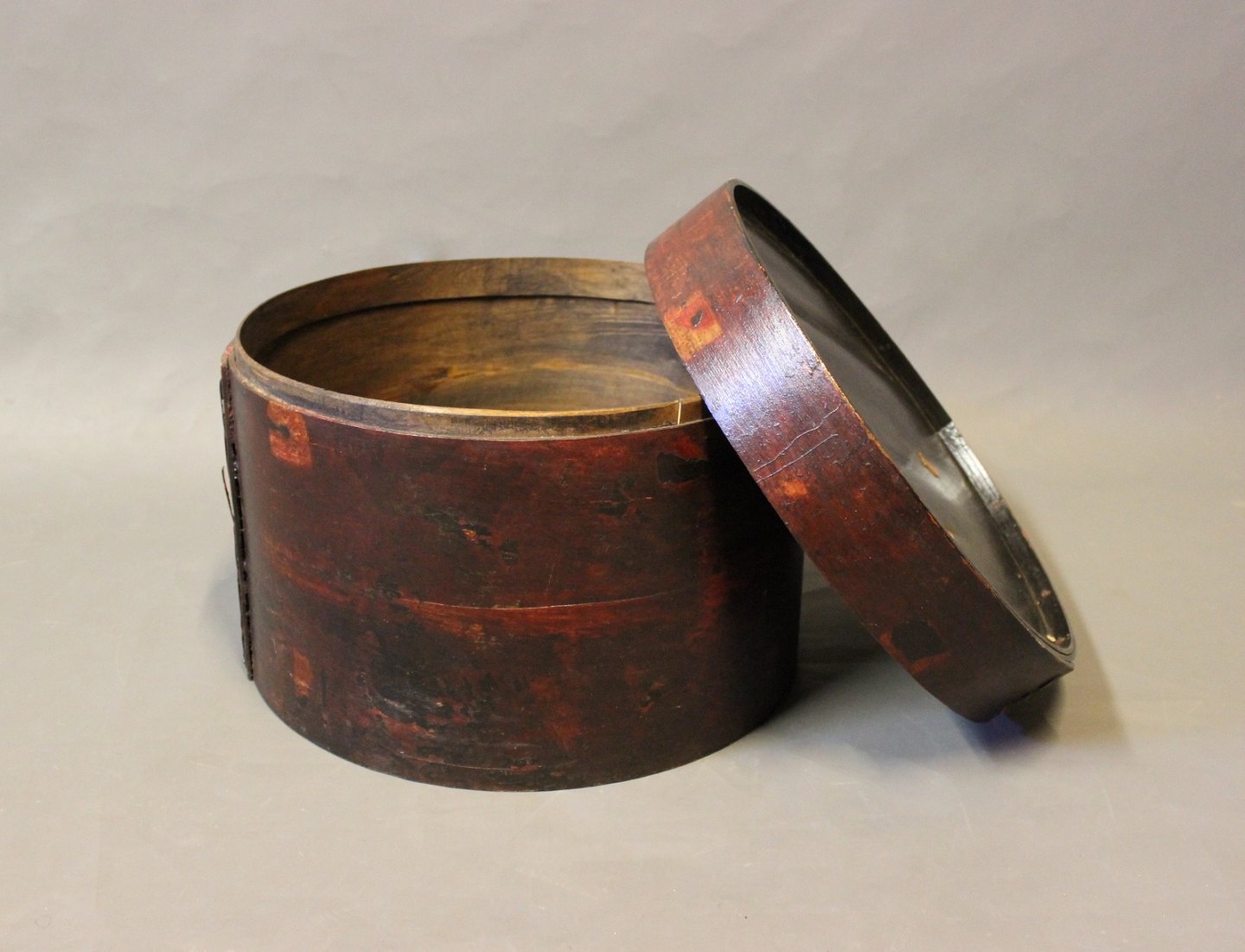 Kinesisk hattekasse i træ med lak stempel fra omkring 1930erne.