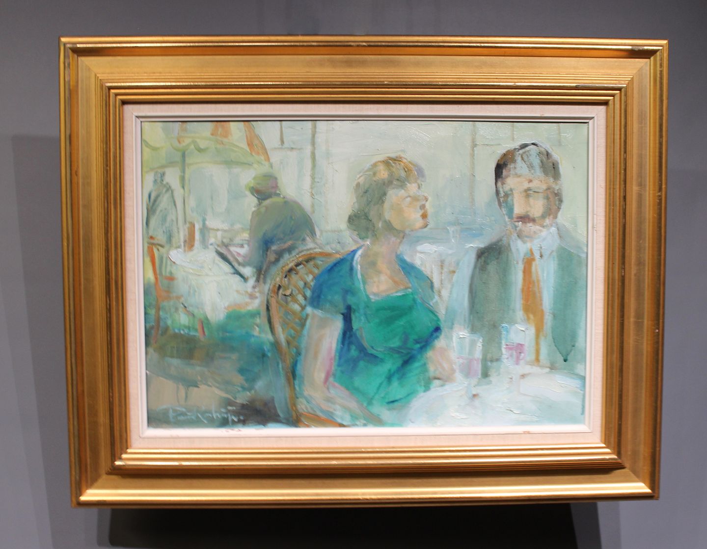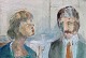 Maleri på lærred, med motiv af Mand og kone i kolde farver, signeret Paul Kastrup.