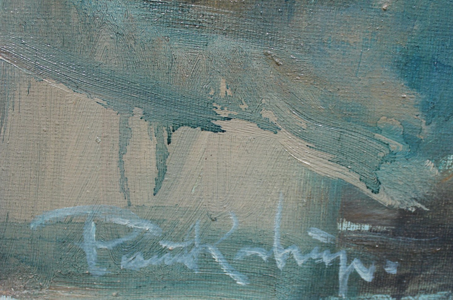 Painting on canvas with motif of man and wife in col colors, signed Paul Kastrup.