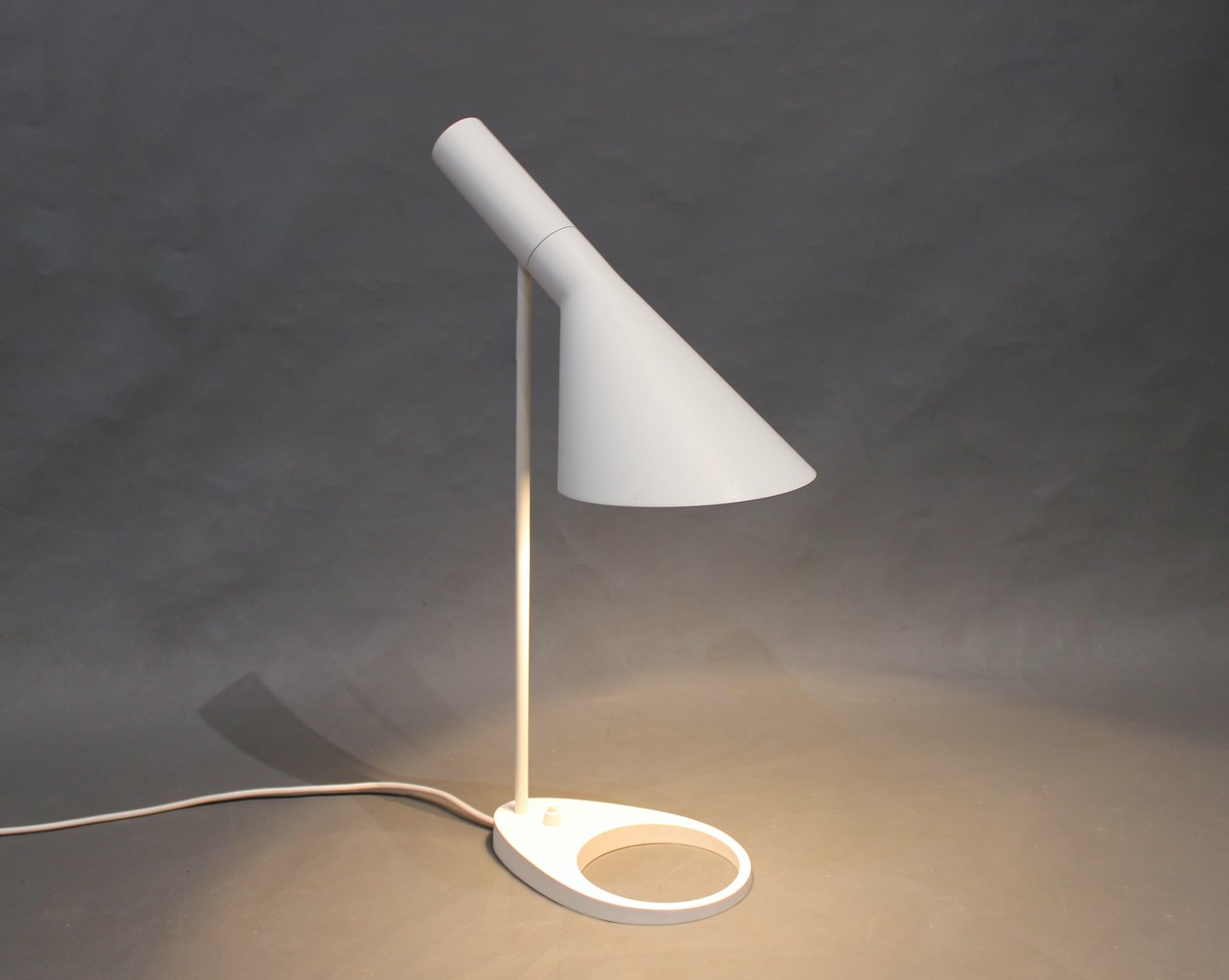SoldArne Jacobsen, white tablelamp, designed in 1960 and manufactured by Louis Poulsen. The lamp is in great vintage condition.