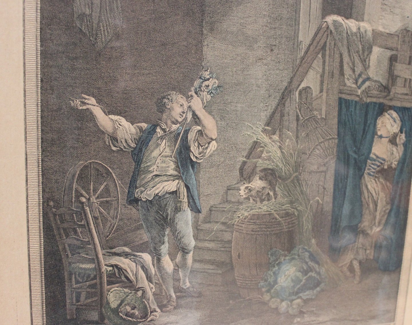Gravering, "Rose Et Colas" af P.A. Baudouin, (1723-1769).