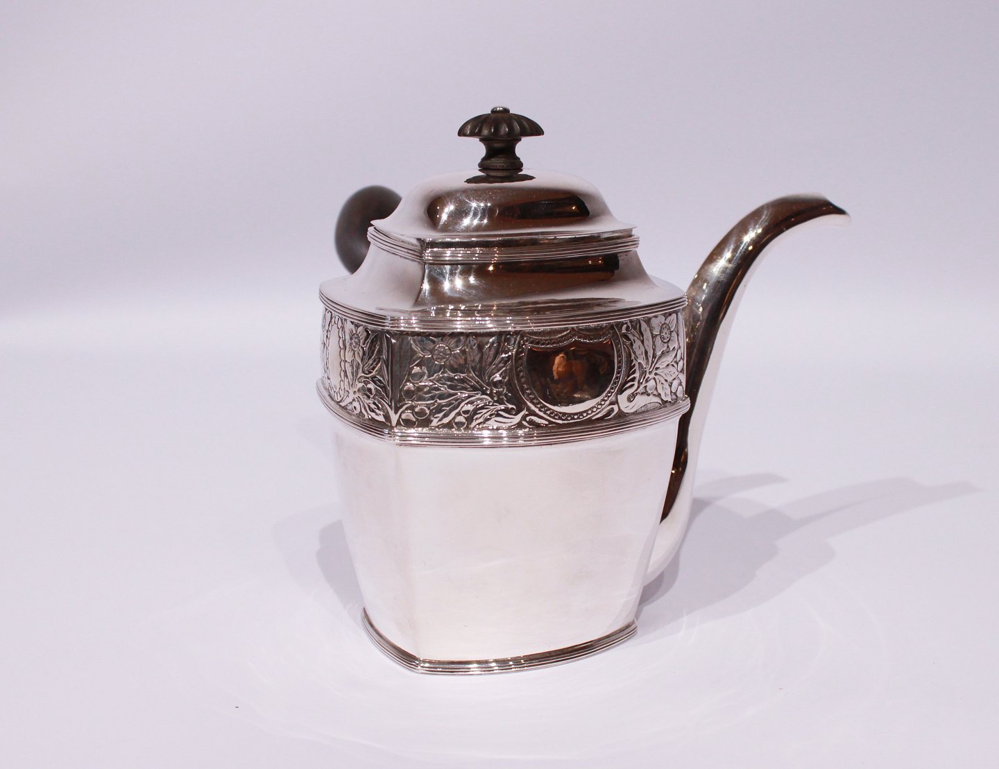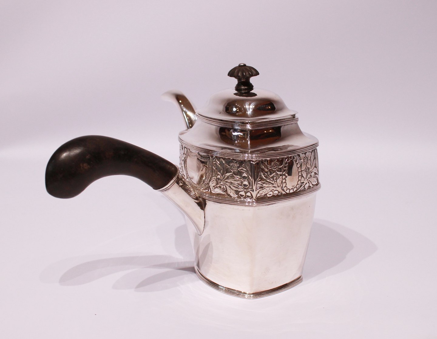 Jug decorated with pattern and with ebony handle, hallmarked silver.