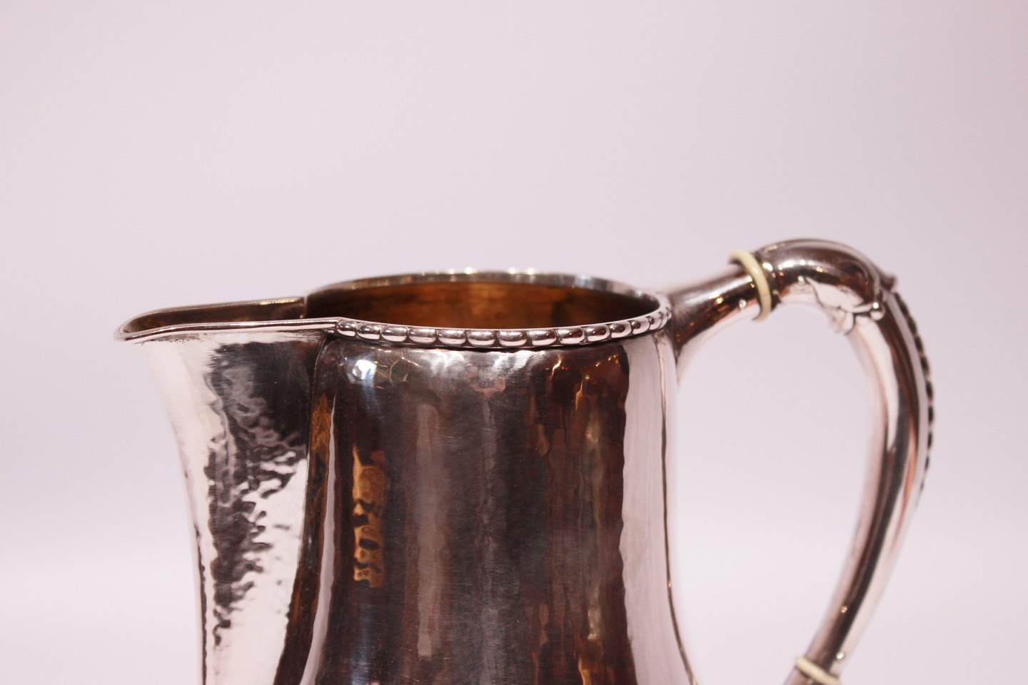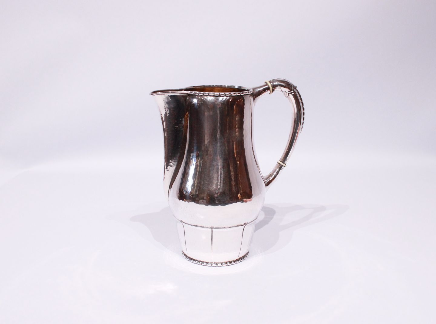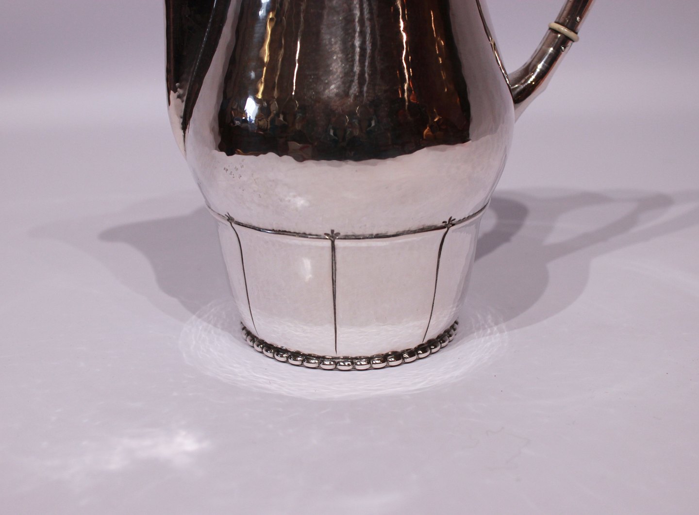 Beautiful water jug decorated with pearl edge and ivory, hallmarked silver.