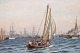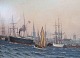 Marine painting with Copenhagen's towers in the background and with gilded frame by Johan Neumann.
