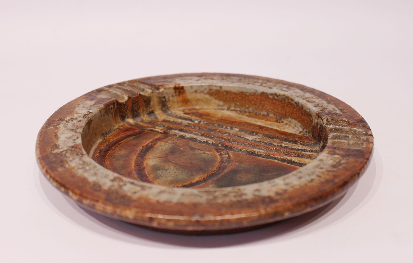 Brunt stentøjsfad med lys glasur af Axella Design.