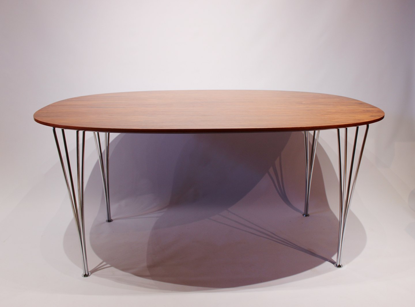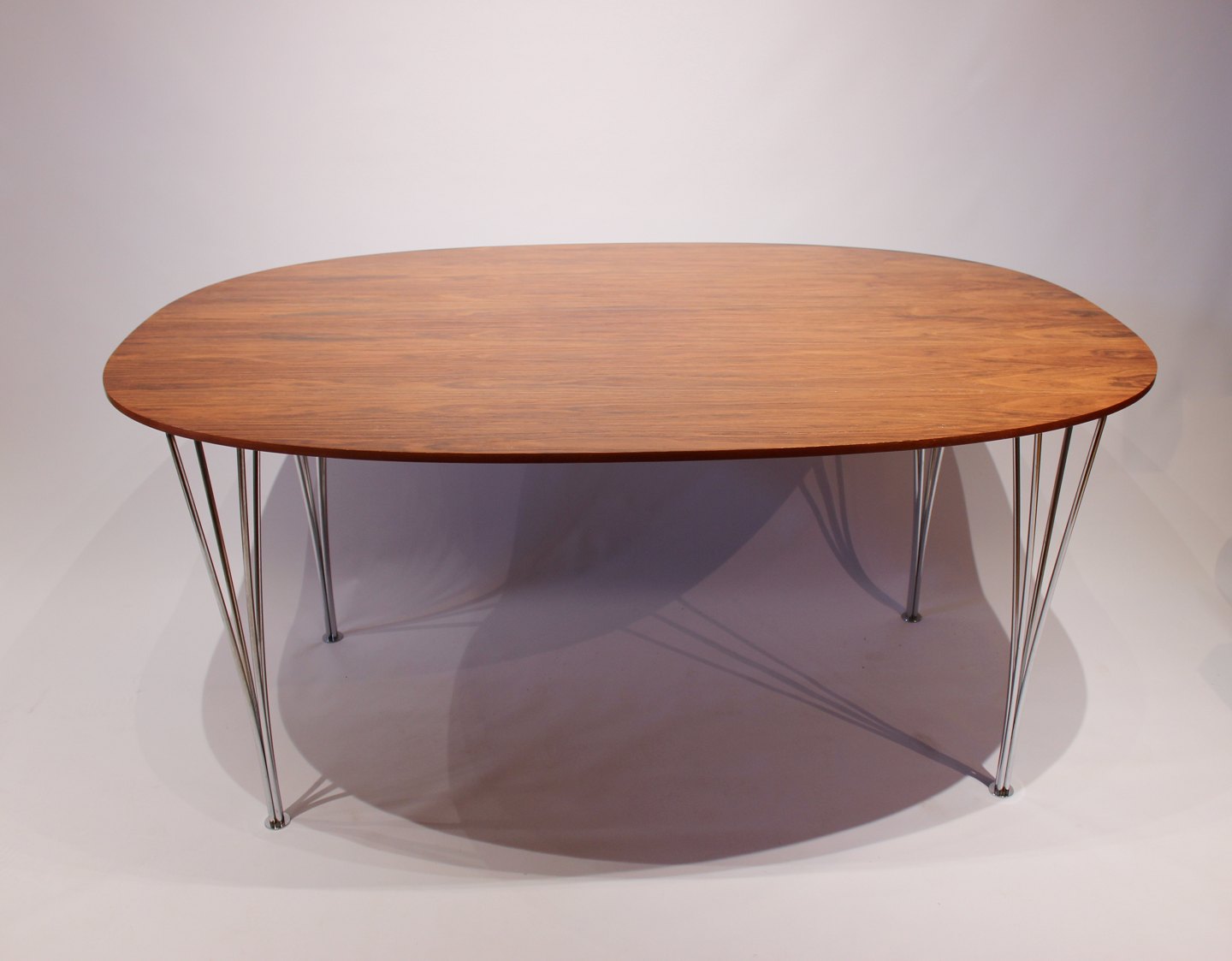 SolgtSuper Ellipse spisebord i palisander og ben af krom designet af Piet Hein, Arne Jacobsen og Bruno Mathsson i 1968. Bordet er i flot brugt stand fremstillet af Fritz Hansen i 1983.
