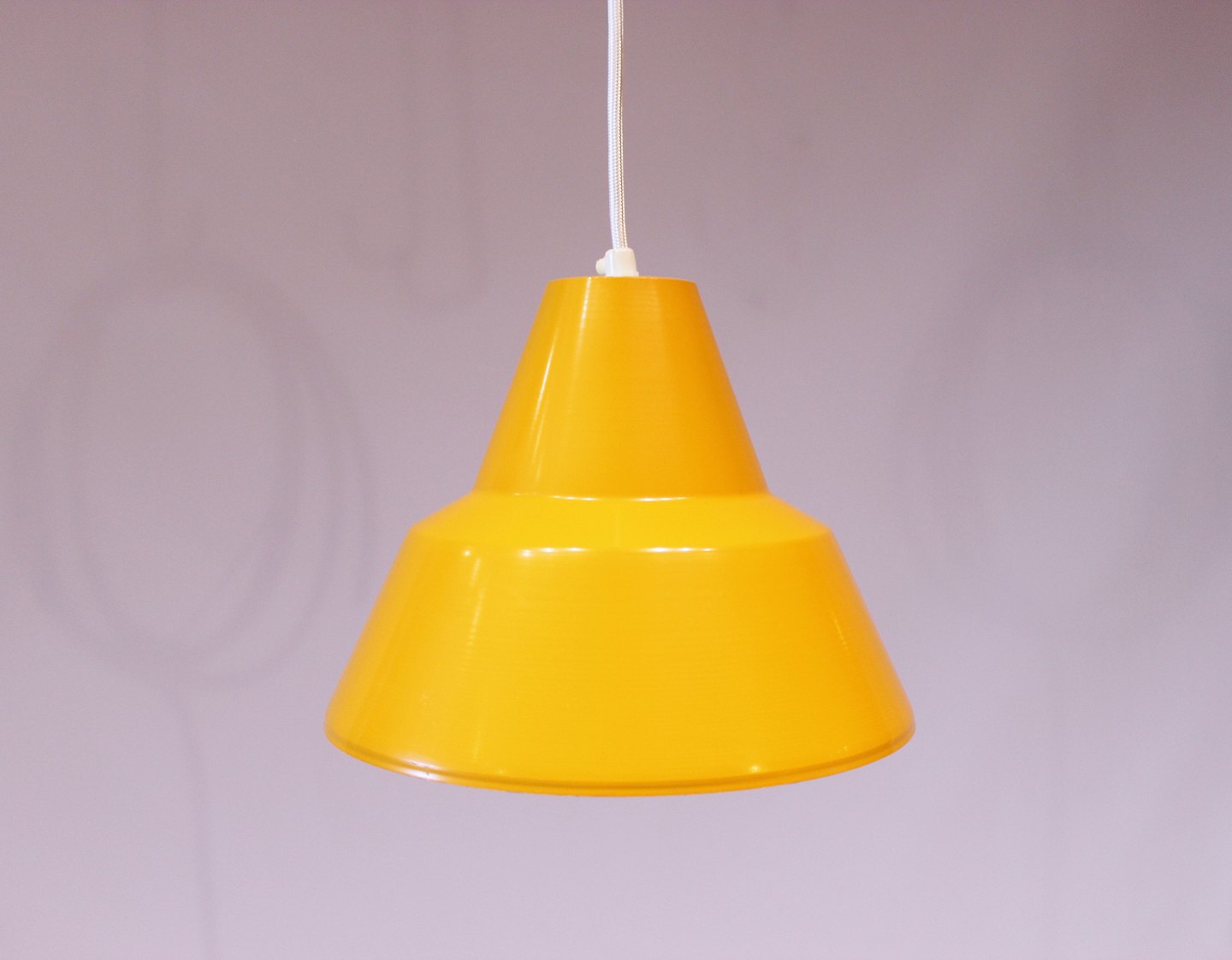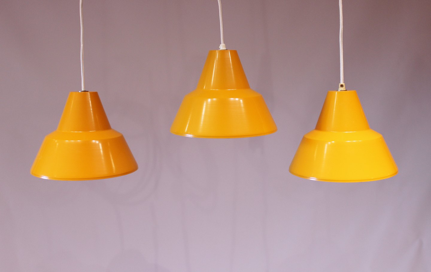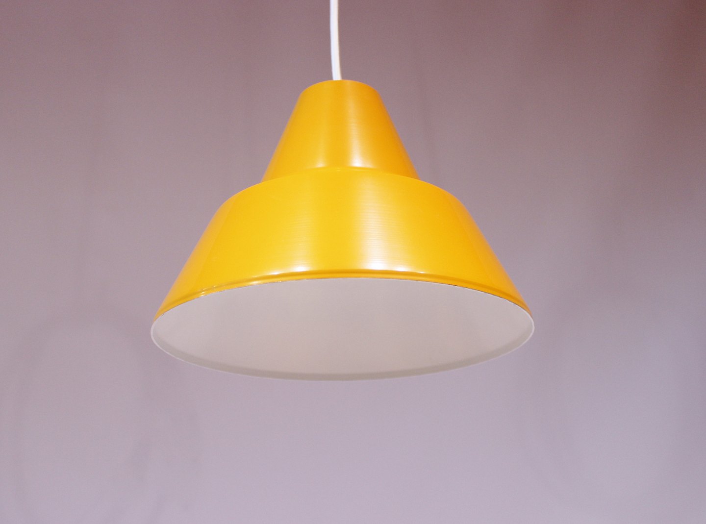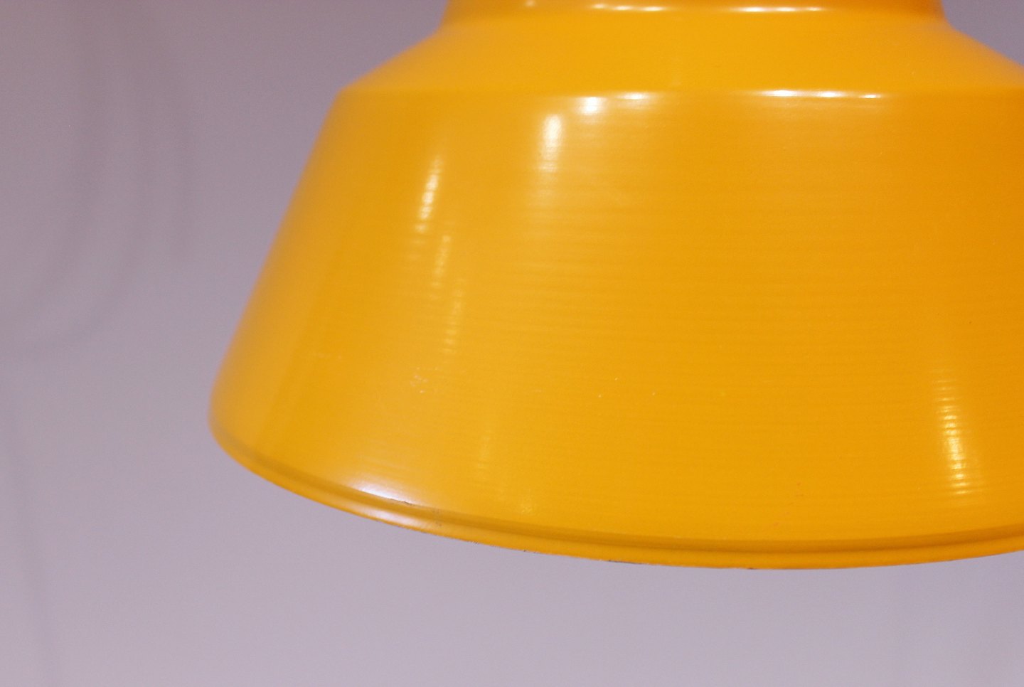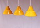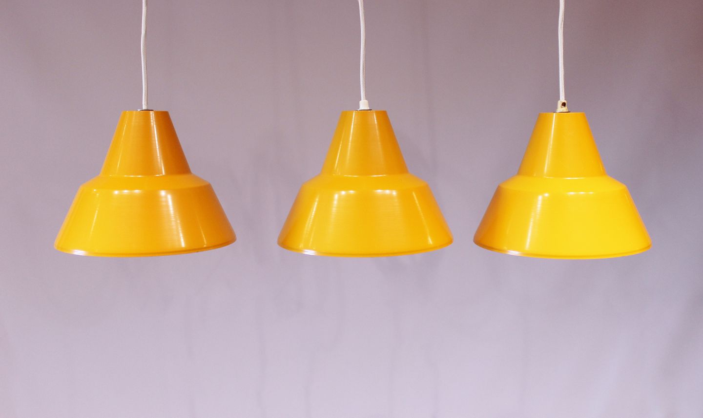 Set of 3 yellow workhop pendants of danish design from the 1960s.