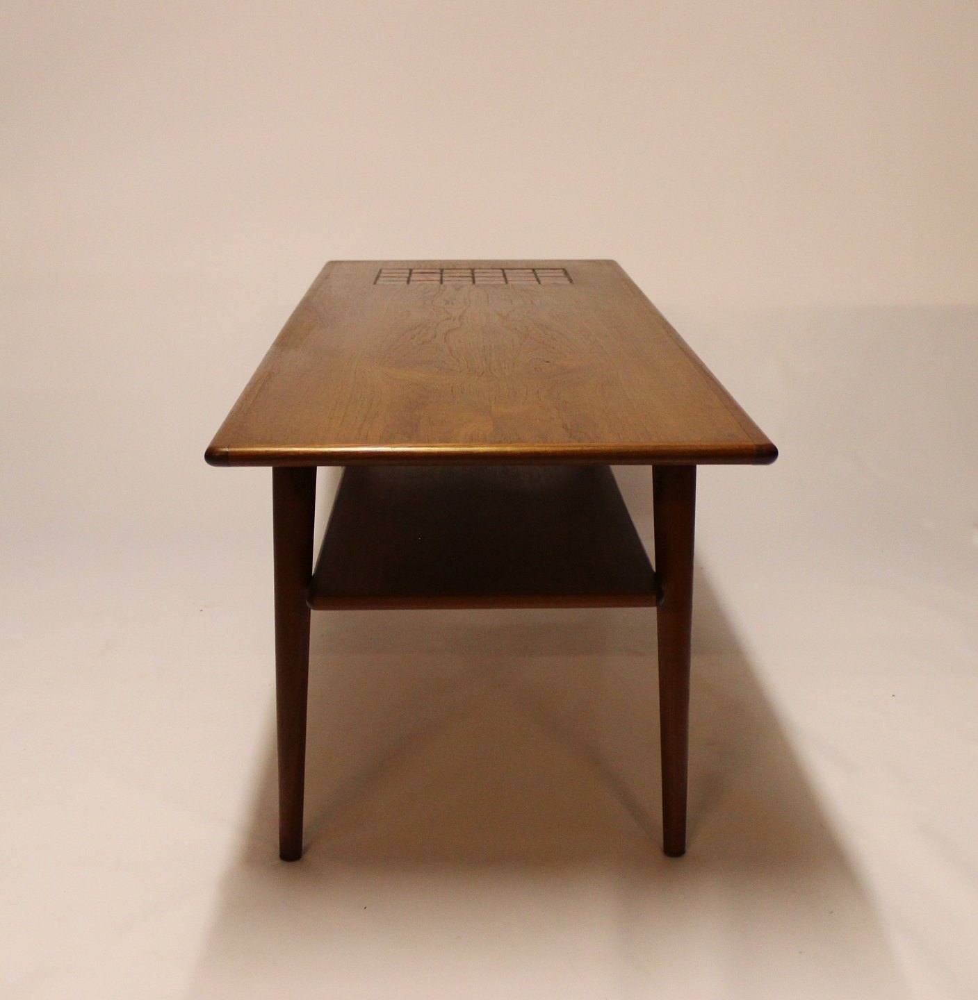 Coffee table in teak with tiles in dark colors of danish design from the 1960s. The table is in great condition.