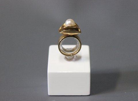 Ring med stor rav klump dekoreret med fjer i 925 sterling sølv og stemplet SAN.