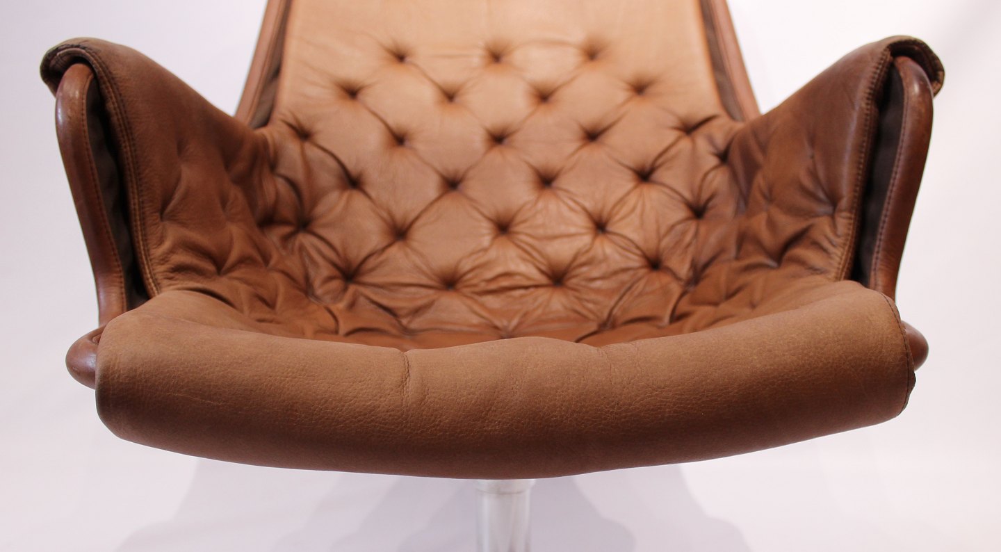 SoldEasy chair, model Jetson 69, originally upholstered in brown patinated leather designed by Bruno Mathsson in 1966 and manufactured by DUX in the 1960s.