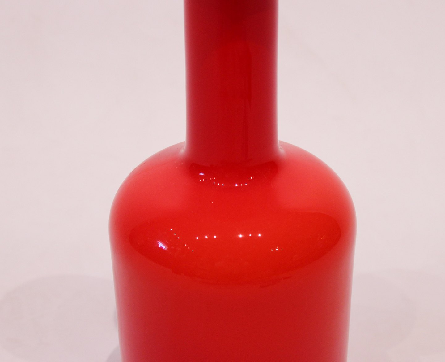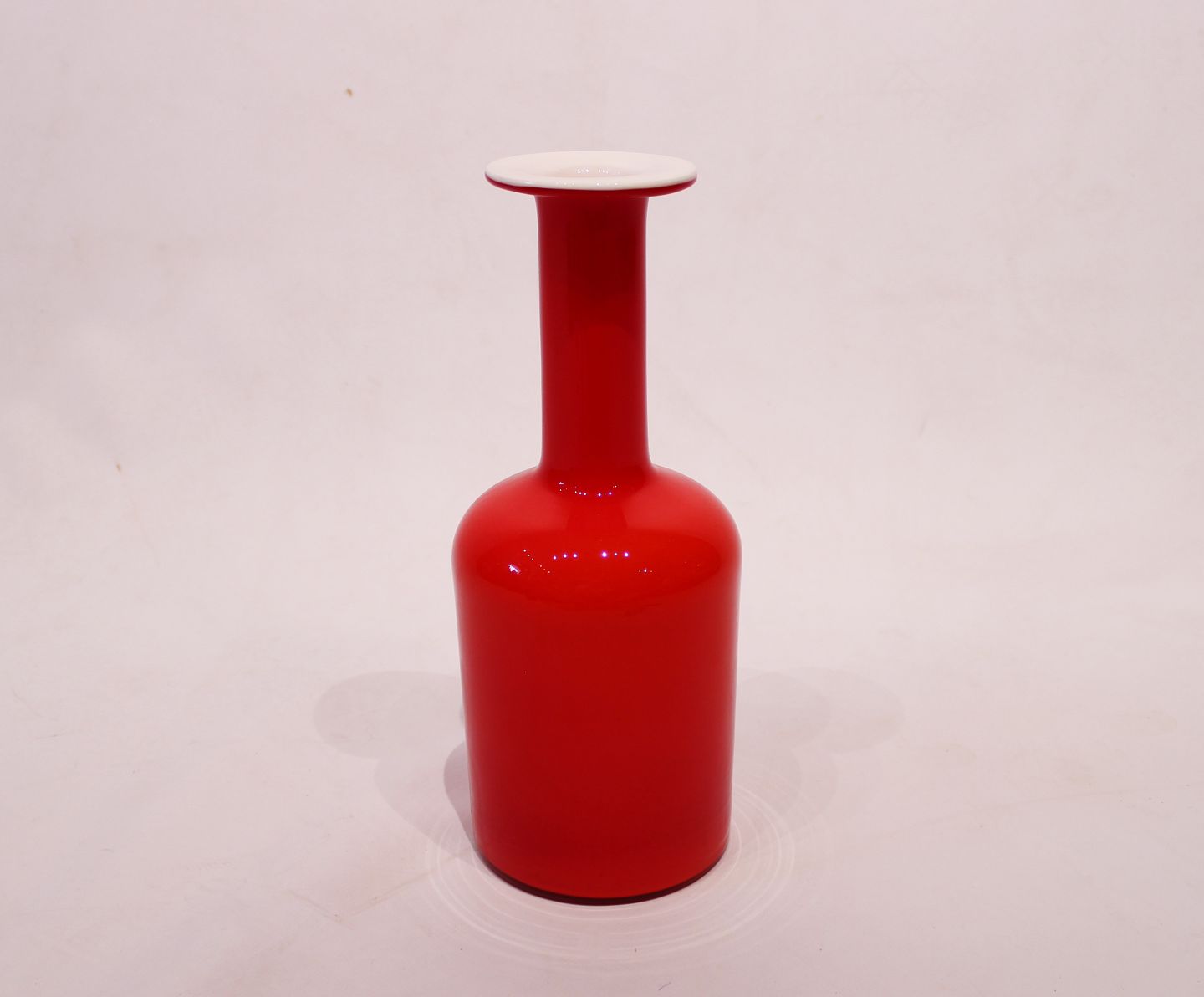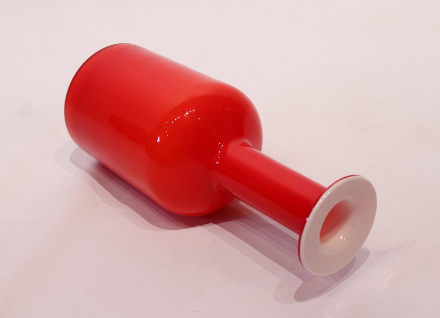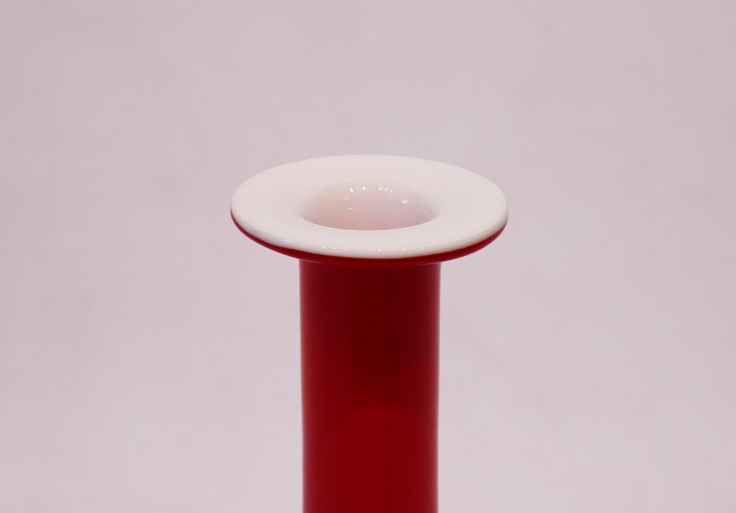 SoldRed glass vase with white opal glass on the inside by Otto Brauer for Holmegaard.