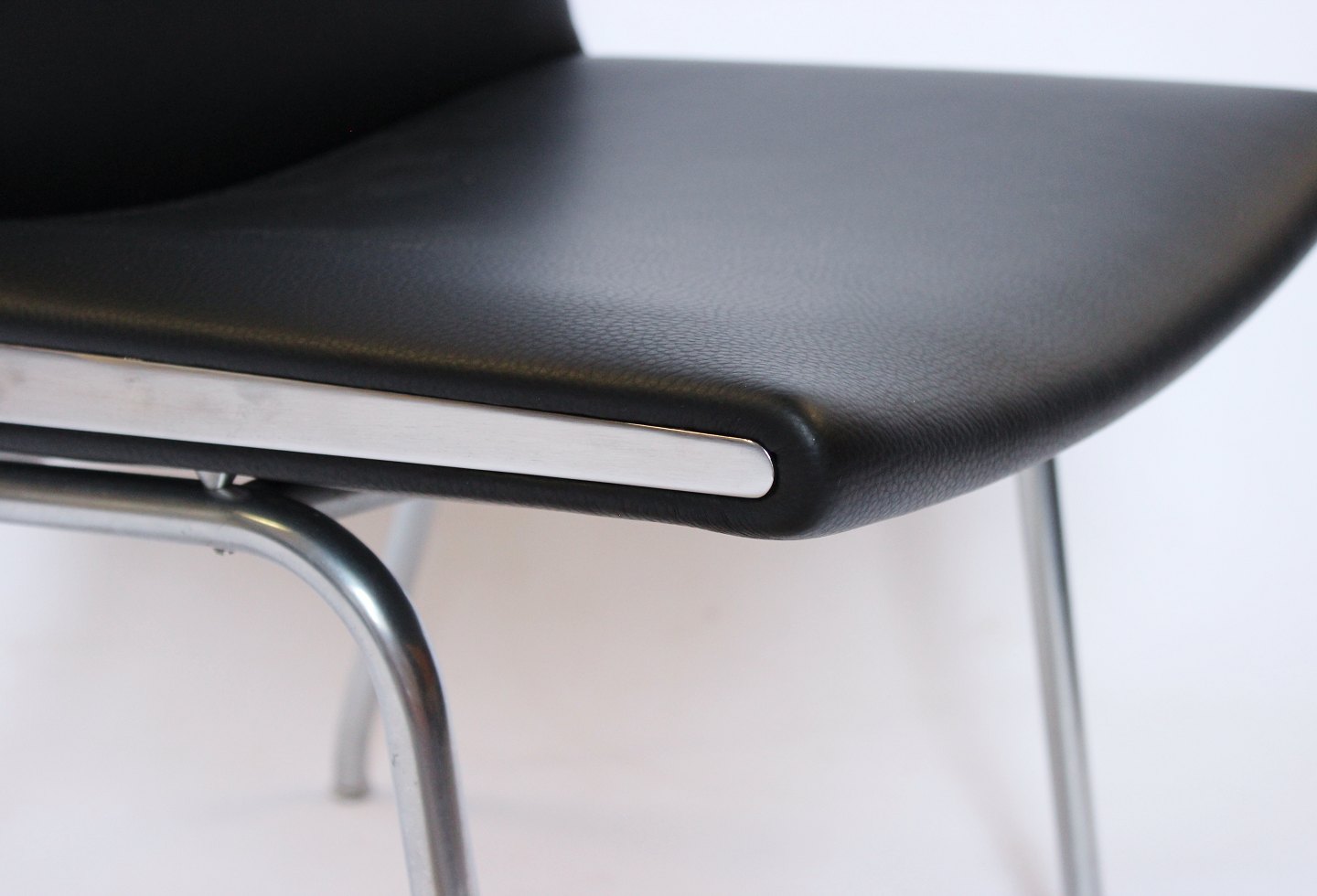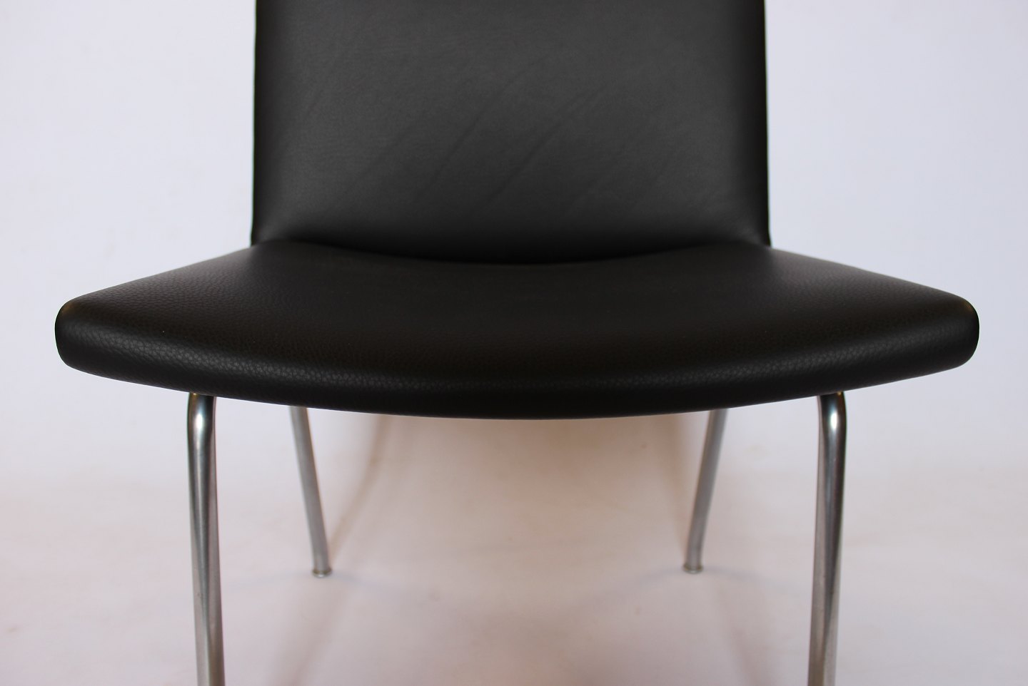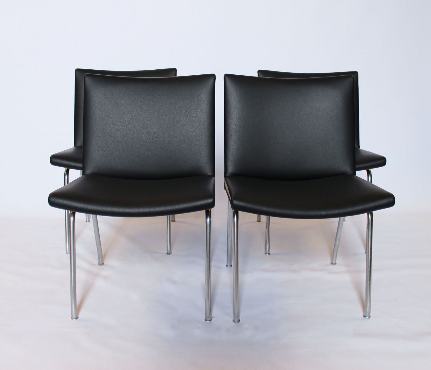 SoldSet of 4 "Airport-chairs", model AP37, designed by Hans J. Wegner and manufactured by AP Stolen in the 1950s. The chairs are newly upholstered in black classic leather.