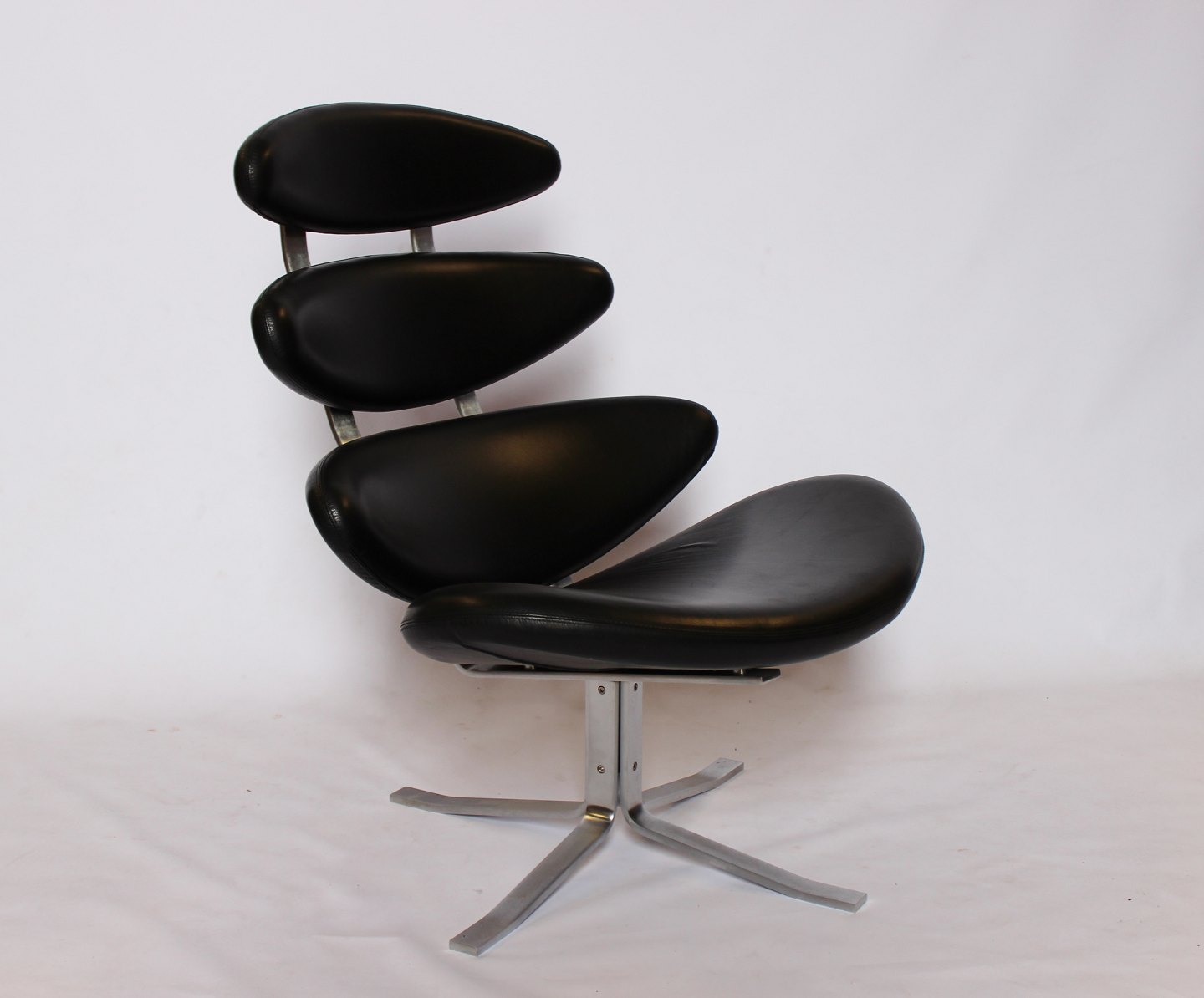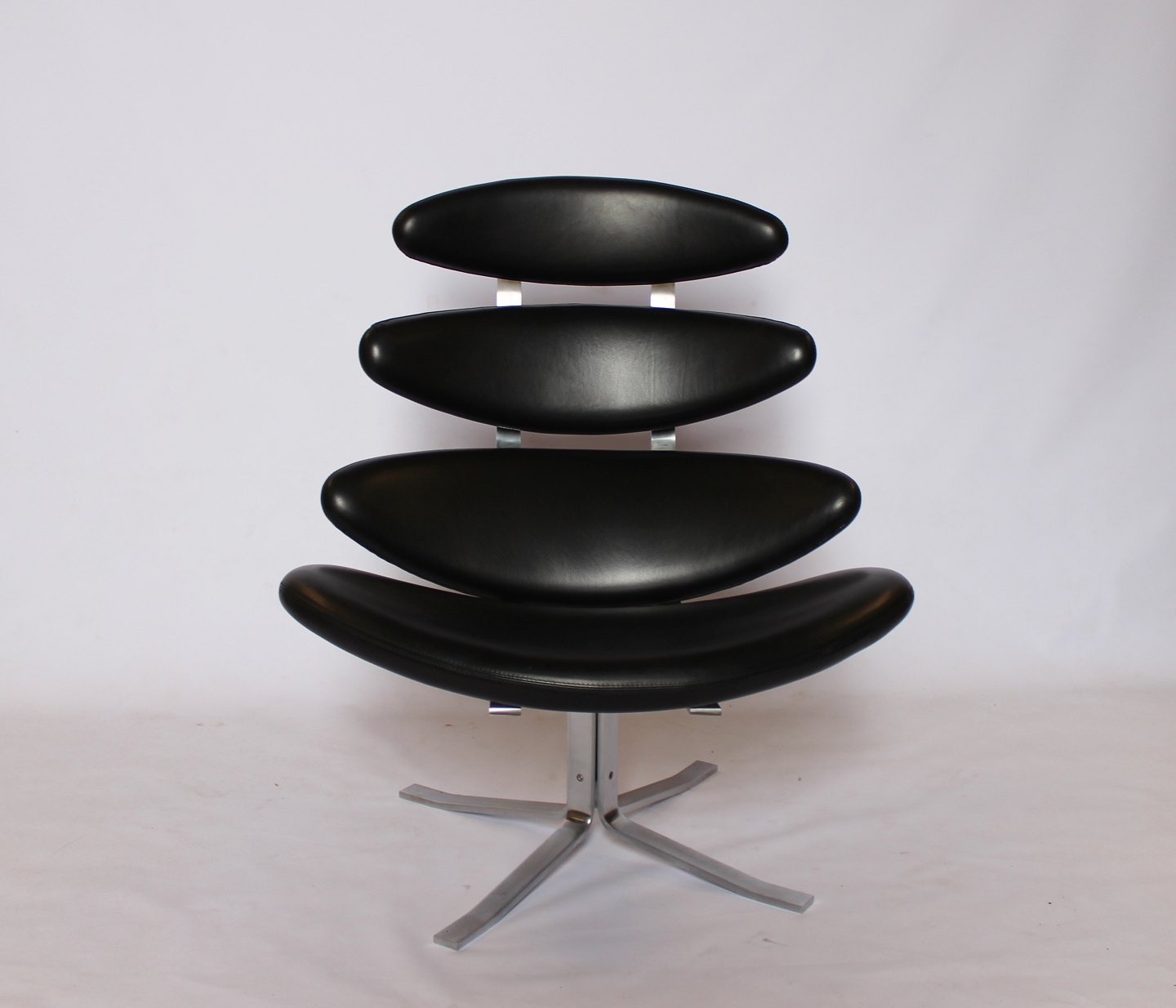 Set of two Corona easy chairs, model EJ 5, in black Cava leather, by Poul M. Volther and Erik Jørgensen.