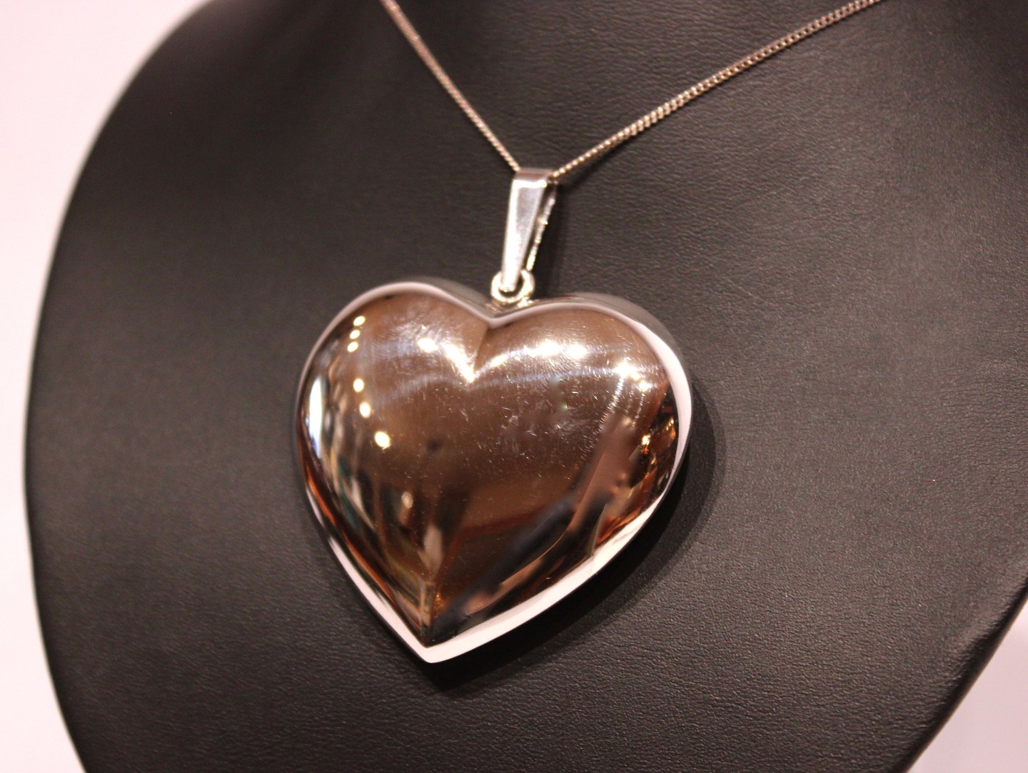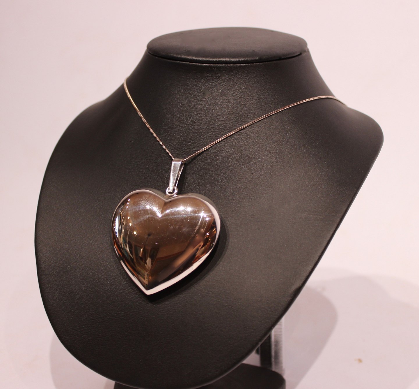 SolgtStort vedhæng i form af et hjerte, stemplet HS i 925 sterling sølv. Lignende kæde kan købes separat.