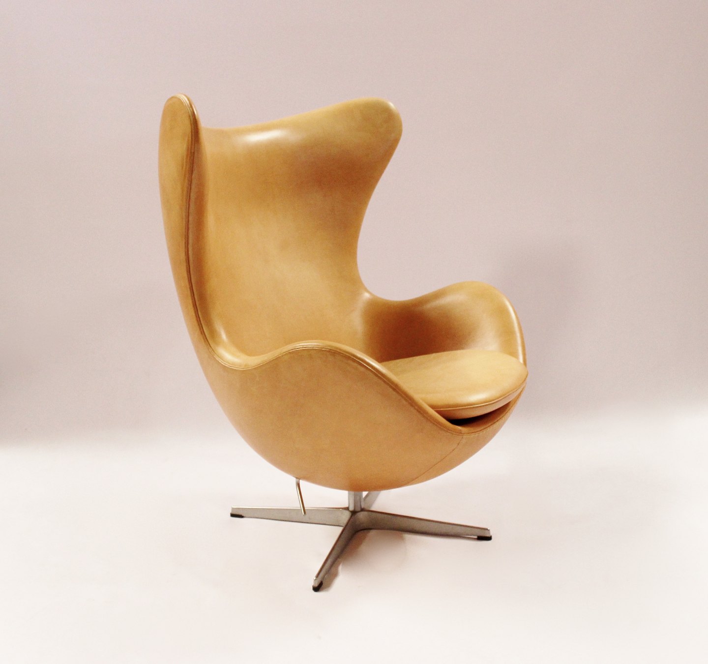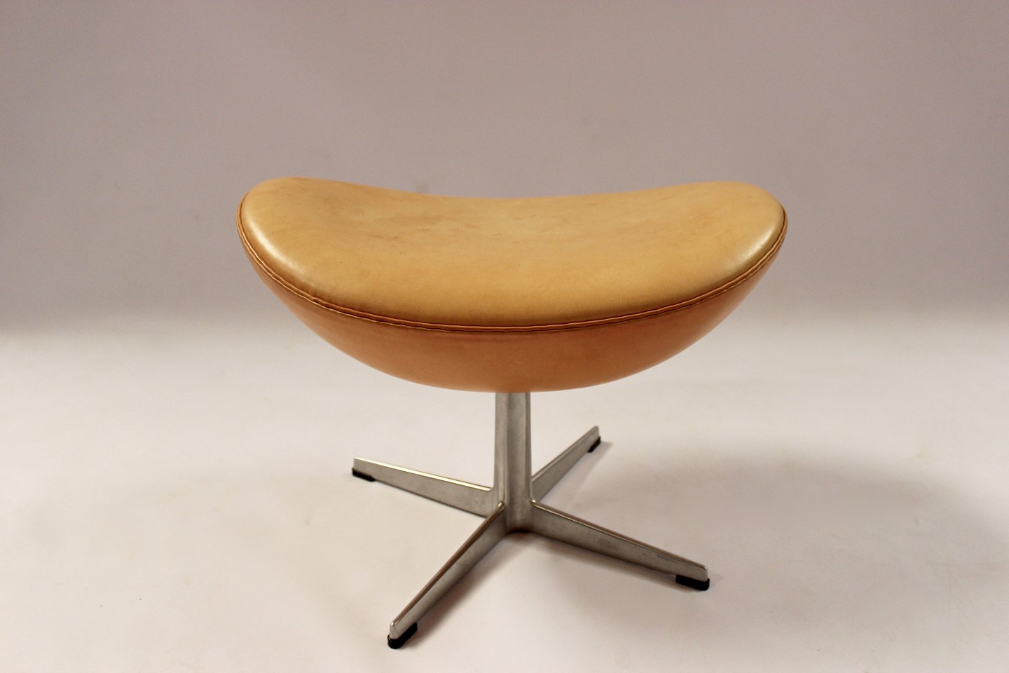 Arne Jacobsen designede Ægget til lobbyen i SAS Royal Hotel i København, hvor det blev et af de mest ikoniske møbler i moderne designhistorie. Stolen er kendt for sin innovative form, der omslutter brugeren og giver en følelse af privatliv og komfort. Skamlen er designet som en tilhørende del af sættet og er en perfekt ledsager til stolen, der giver yderligere afslapning.