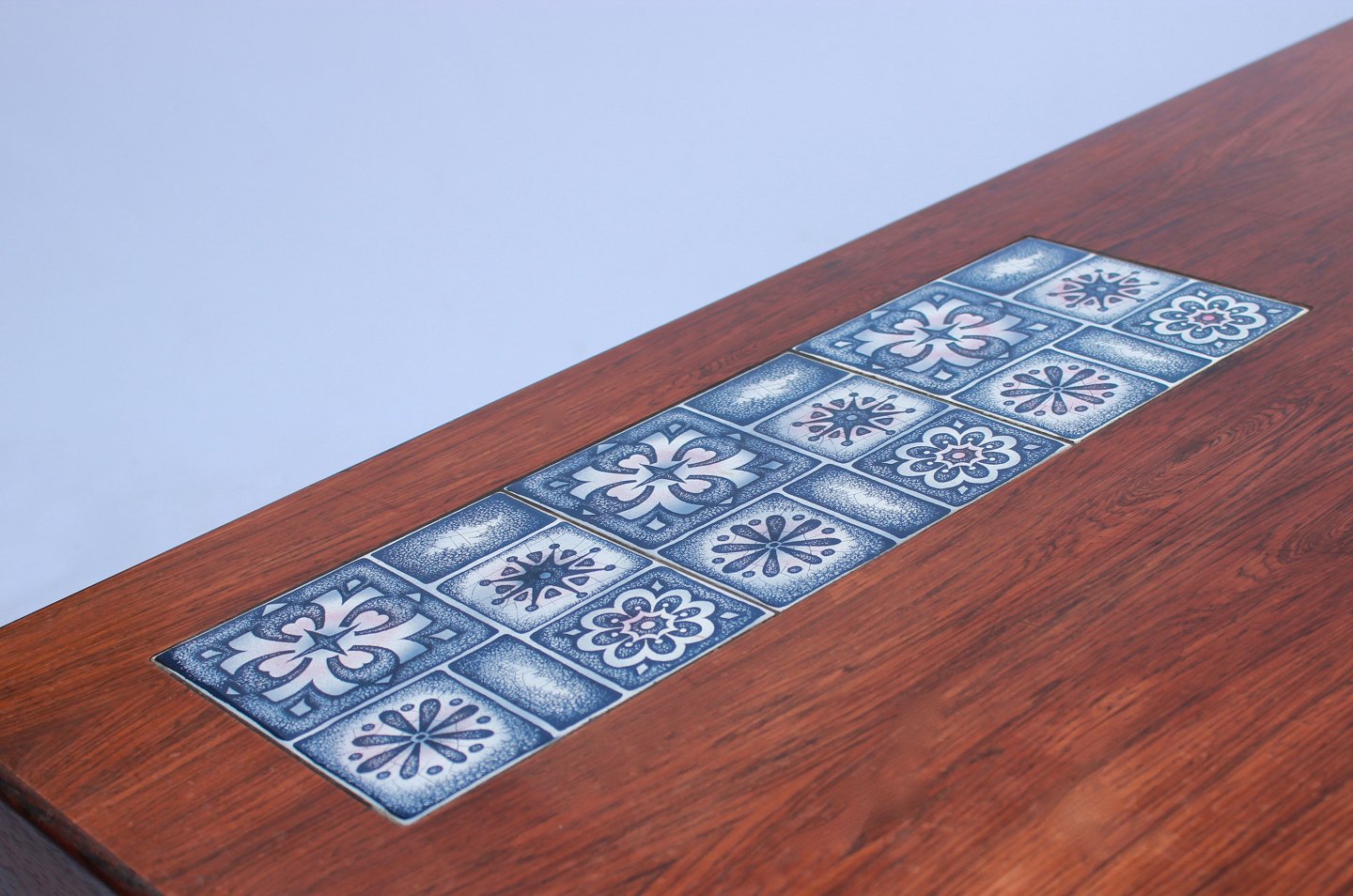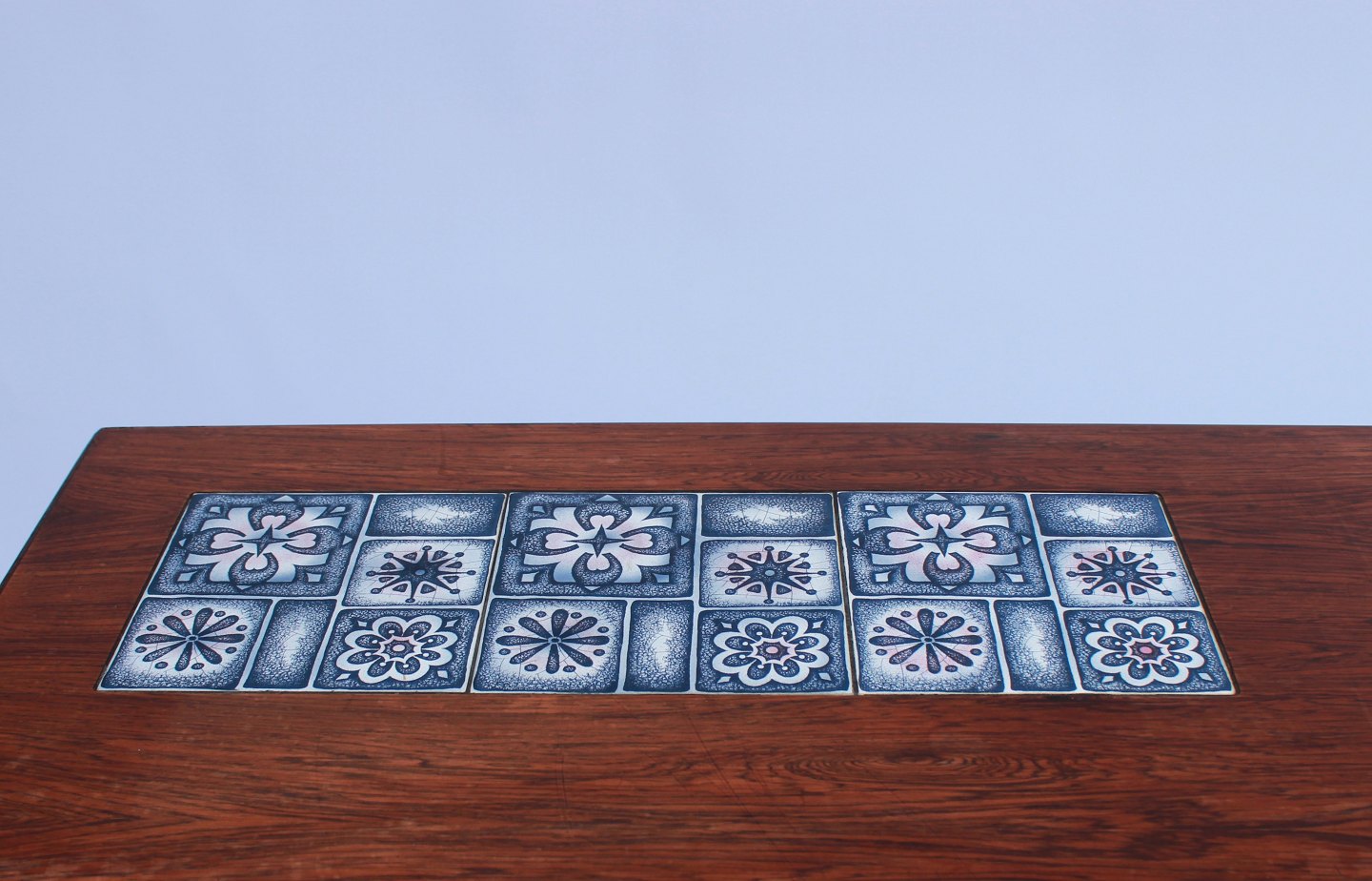 Sofabord i palisander med Kgl. porcelæn kakler designet af Johannes Andersen og fremstillet af Silkeborg Møbelfabrik i 1960erne. Bordet er i flot brugt stand.
