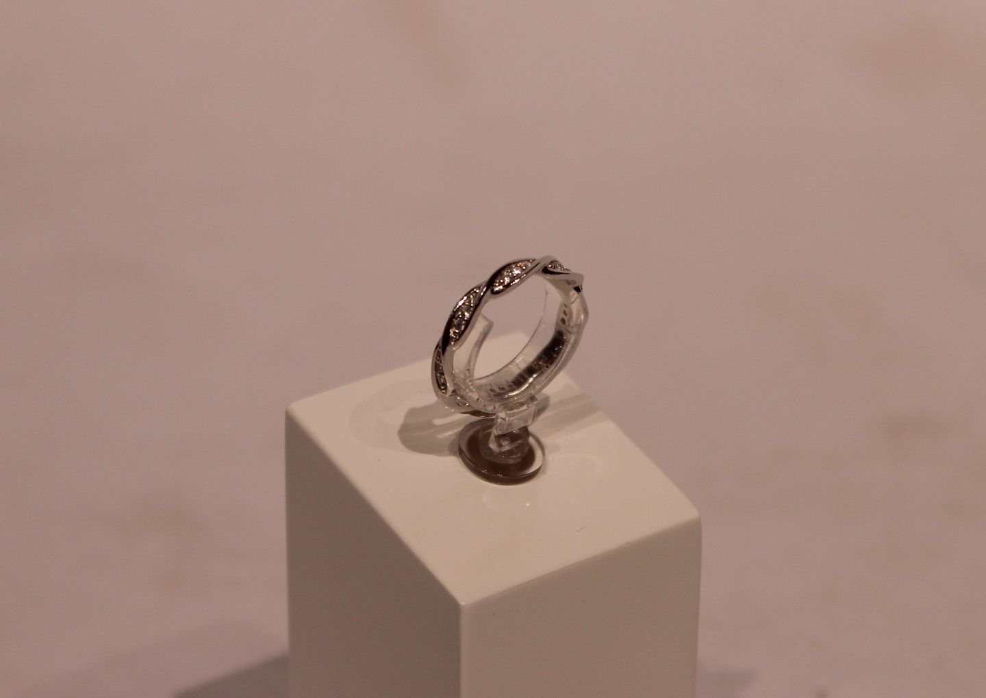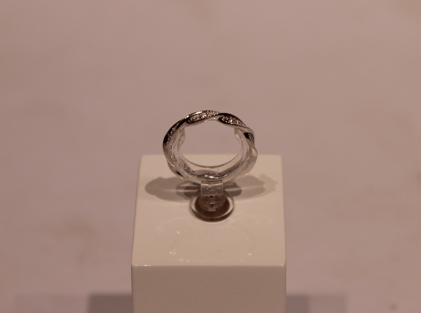 Twisted ring of 925 sterling silver with small clear stones, stamped CT.