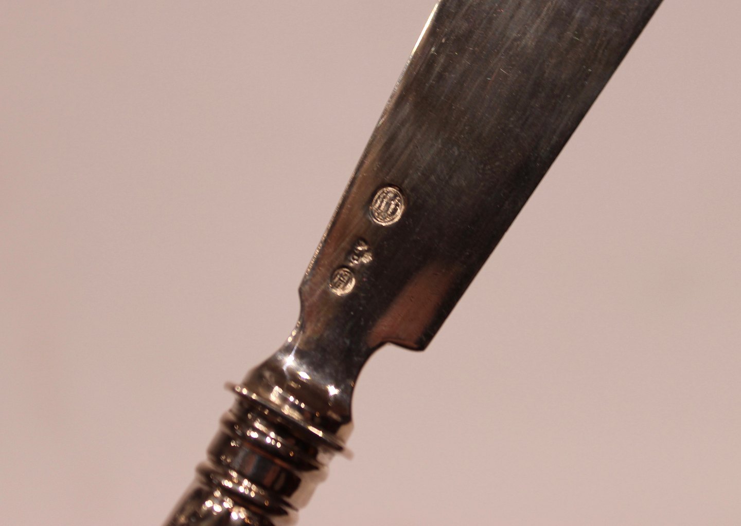 Fiskebestik i andet mønster af tretårnet sølv. Spørg for antal på lager.