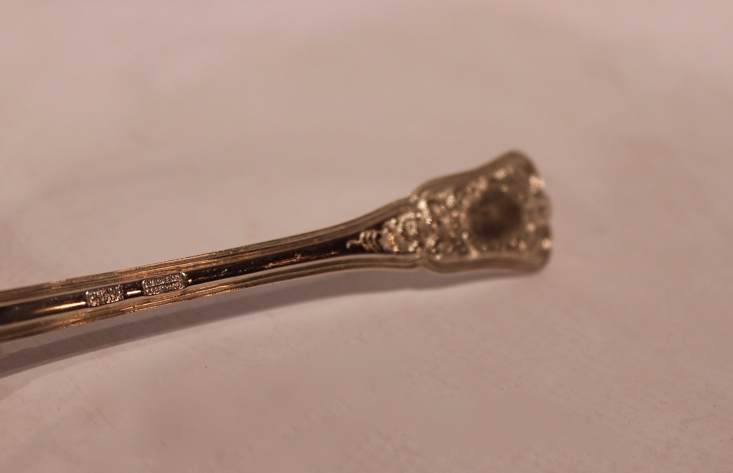 Jam spoon and meat fork in the pattern Rosenborg by A. Michelsen and of hallmarked silver.