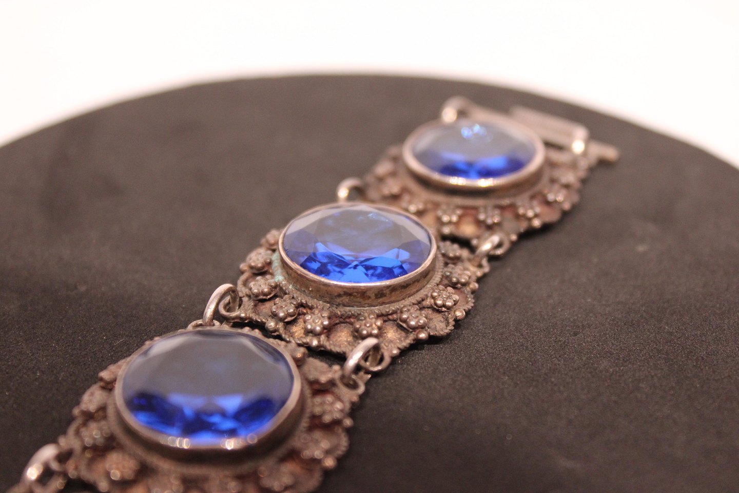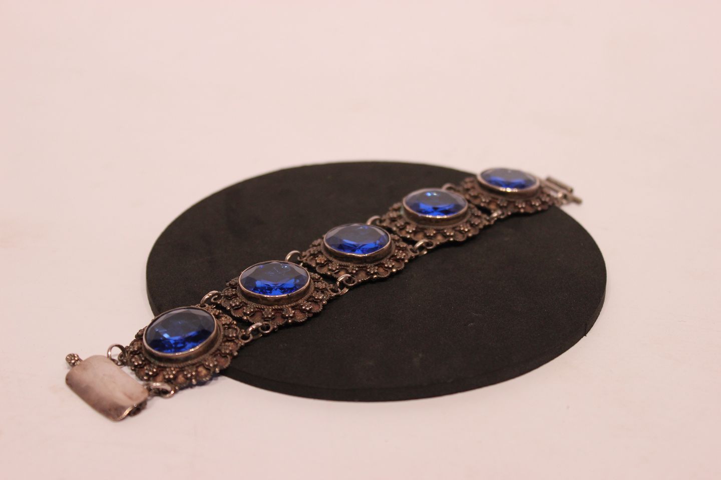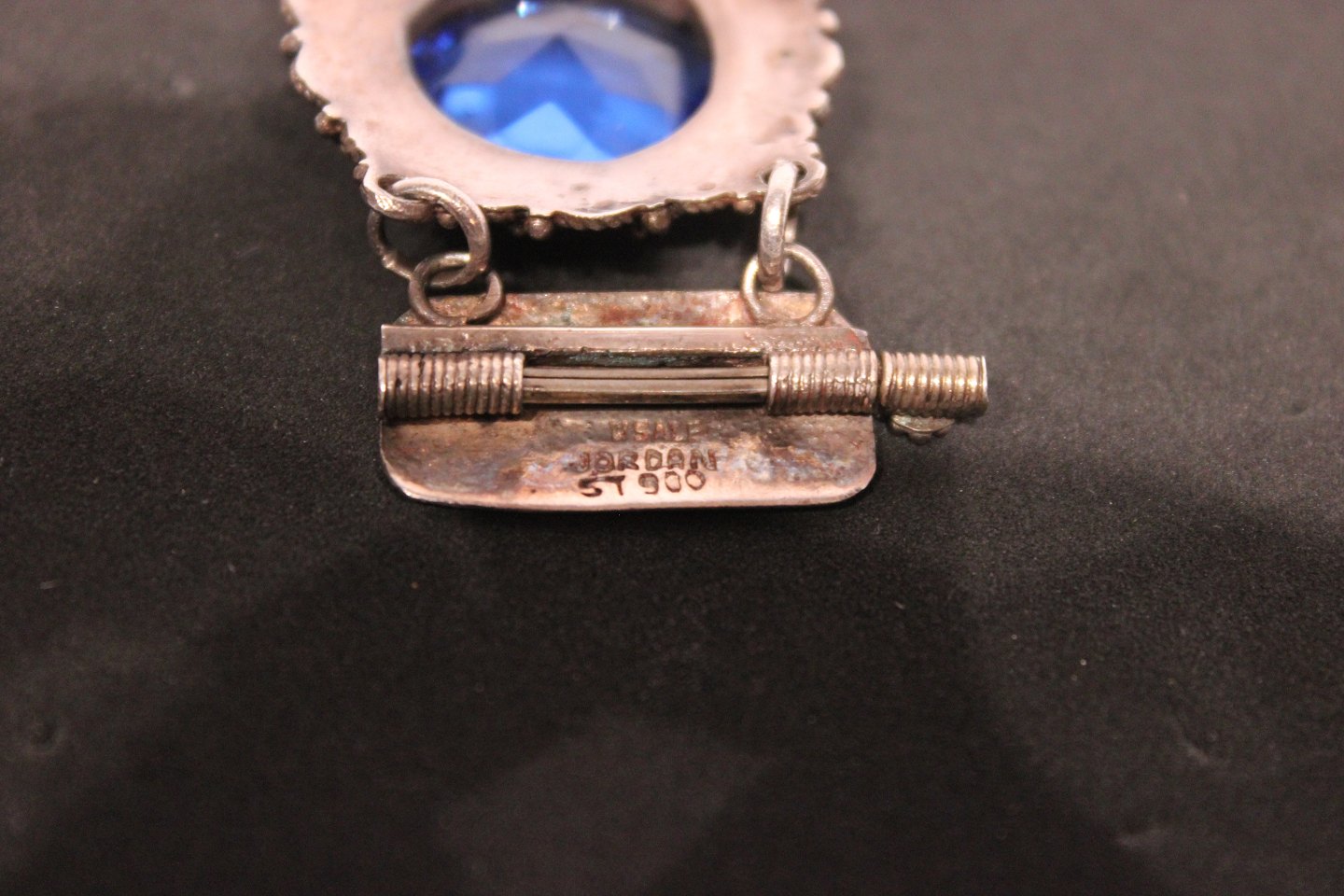 Sterling 900 bracelet with large blue stones from Jordan, stamped Jordan ST 900.