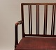 Disse armstole udstråler tidløs elegance og raffinement, med deres konstruktion i mahognitræ og polstring i rødt stof. De er designet af den ikoniske danske møbeldesigner Fritz Hansen i 1930'erne og er et sandt mesterværk inden for dansk møbeldesign.