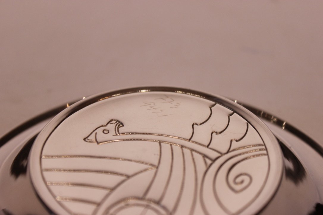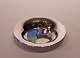 Small plate with enamel in different colors as a viking ship and of hallmarked silver.
