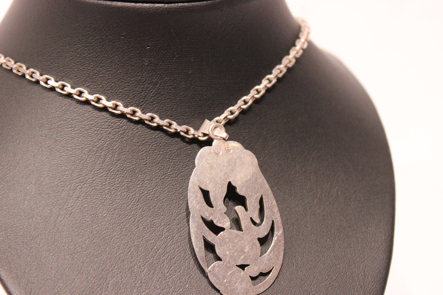 SoldSilver necklace with large pendant with flower motif.