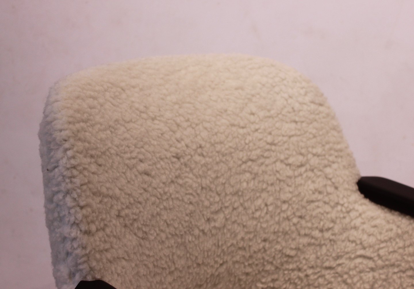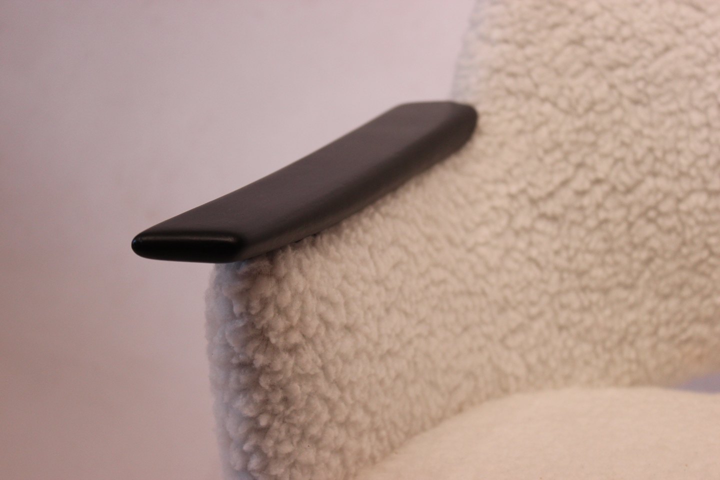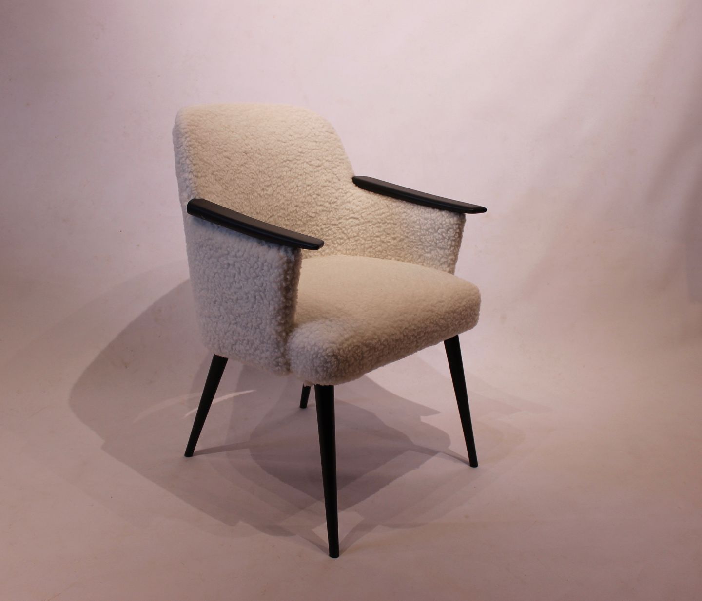 SolgtHvilestol polstret med fåreuld og med arme af sortmalet træ af dansk design fra 1960erne. Stolen er i flot brugt stand.