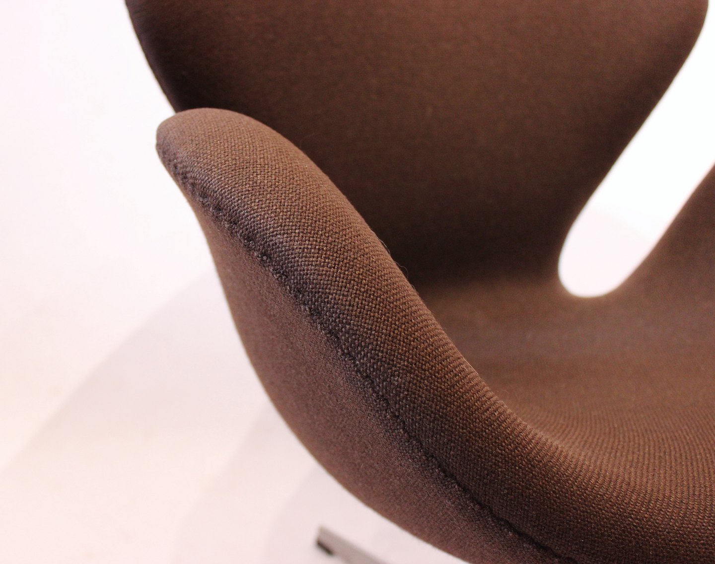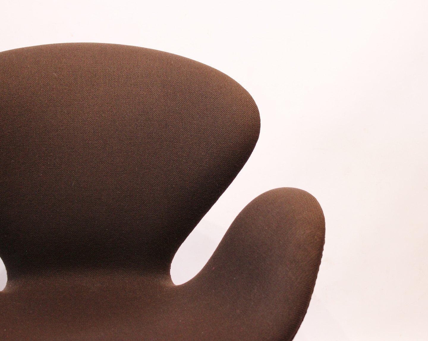 SoldThe Swan chair, model 3320, and stool, model 3127, designed by Arne Jacobsen in 1958 and manufactured by Fritz Hansen in 2001/2003. Both are upholstered with dark brown wool fabric and in great vintage condition.