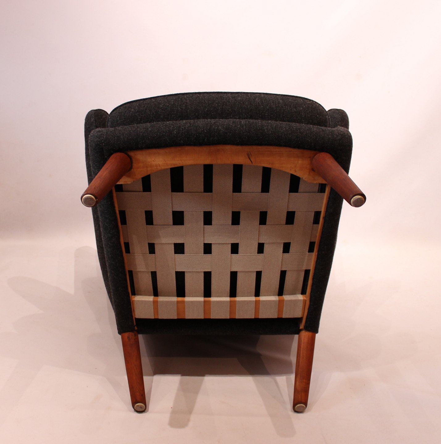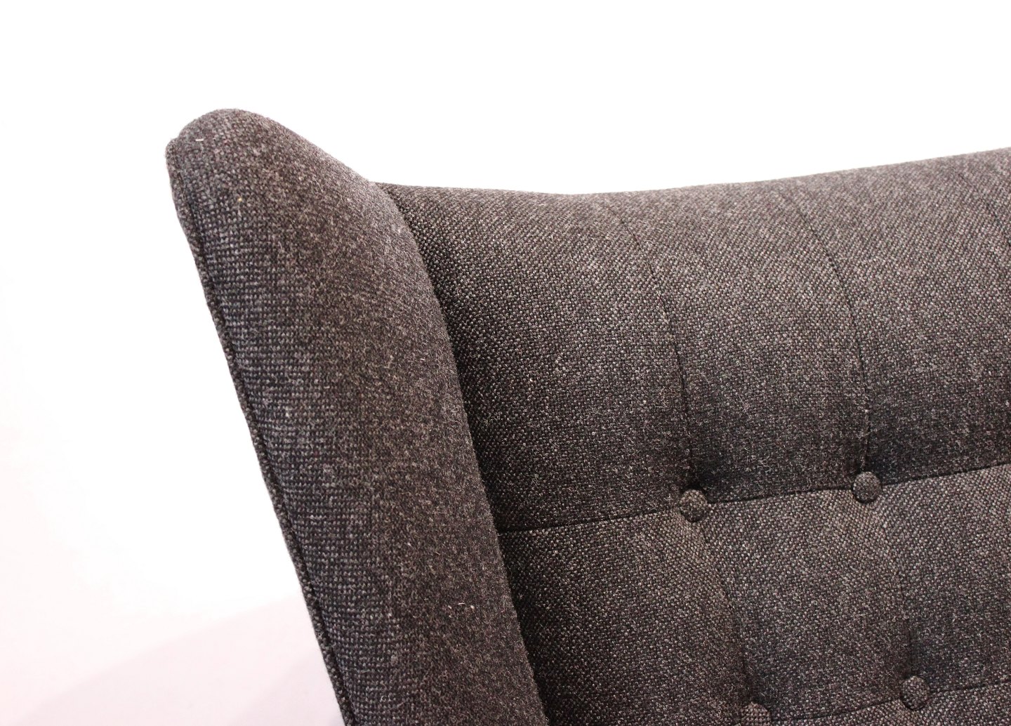 Hans J. Wegner, known for his skill in ergonomics and woodwork, created the Bams chair with a vision of combining comfort and aesthetics. The chair has wide, padded armrests and a high back that provides excellent support and comfort. The solid wooden legs, typically made of oak or walnut, add a warm and natural contrast to the padded seat and back.