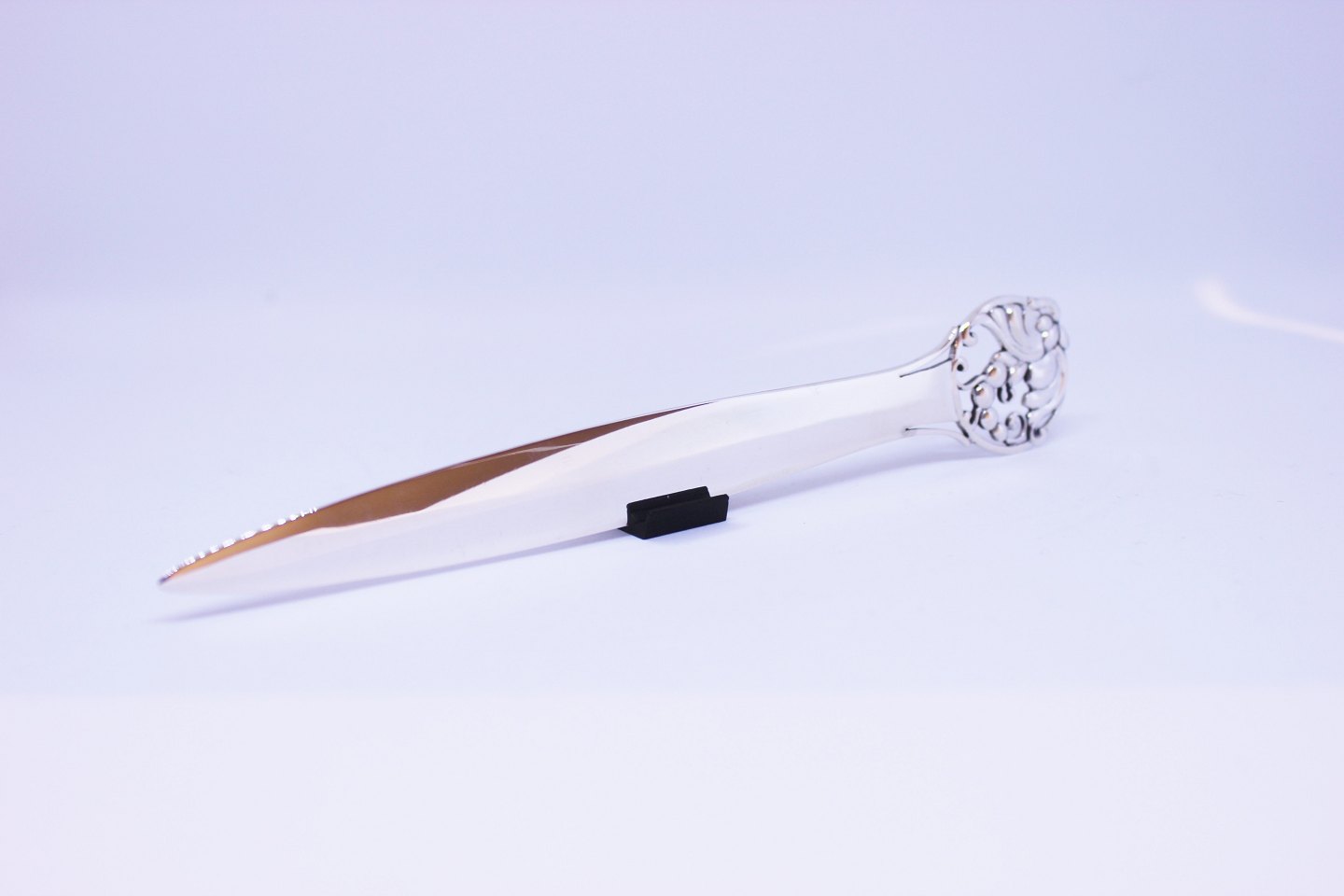 Papirkniv af 925 sterling sølv smukt dekoreret med drueklase.