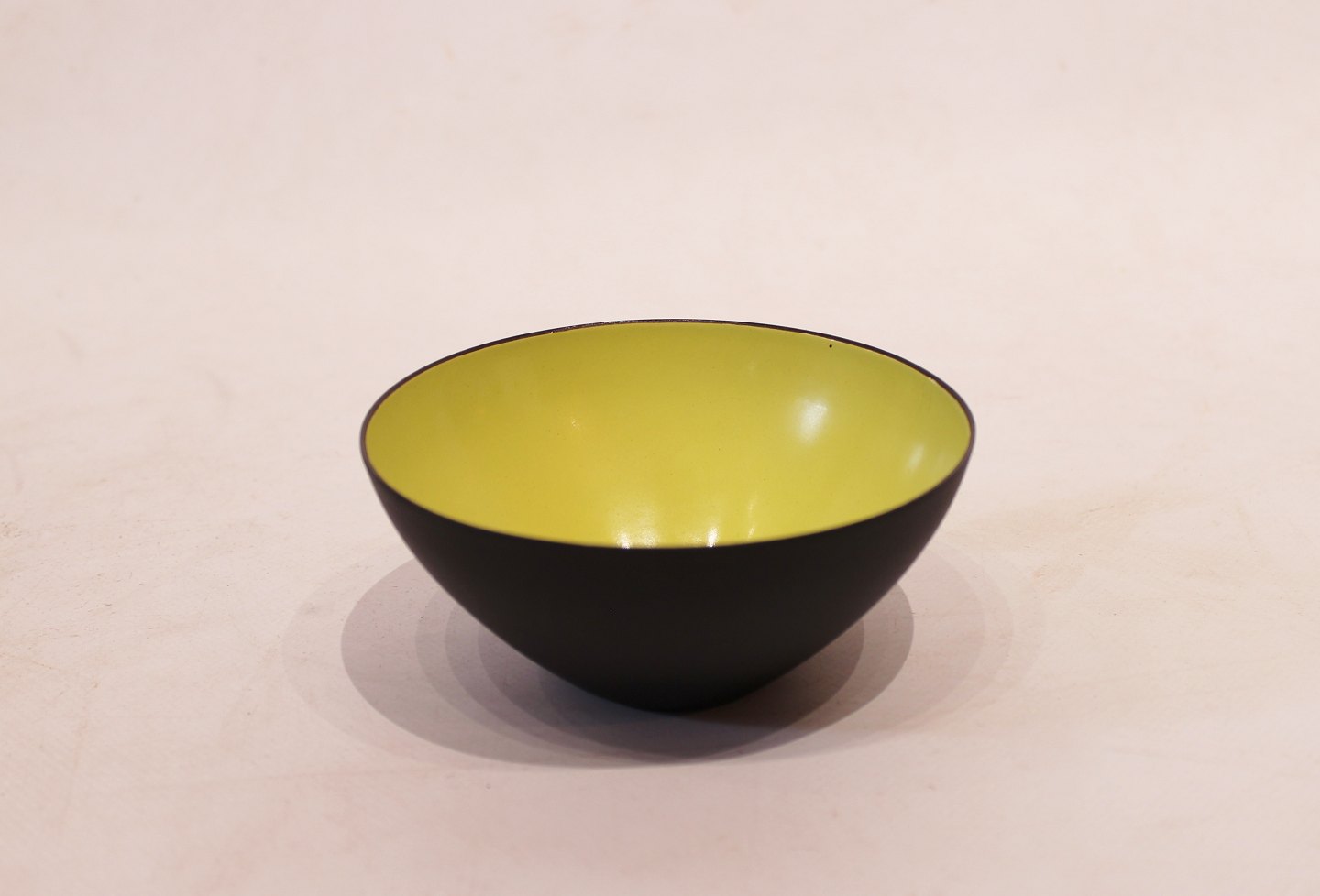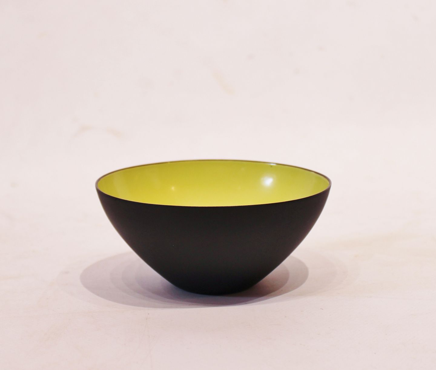 SoldKrenit bowl by Herbert Krenchel of black metal and light green enamel from the 1960s. The bowl is of danish design and in great vintage condition.