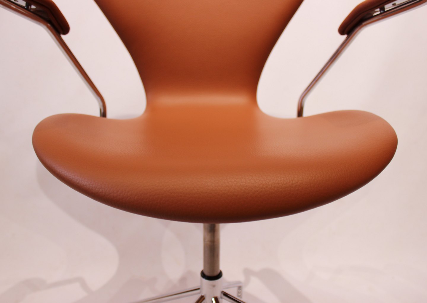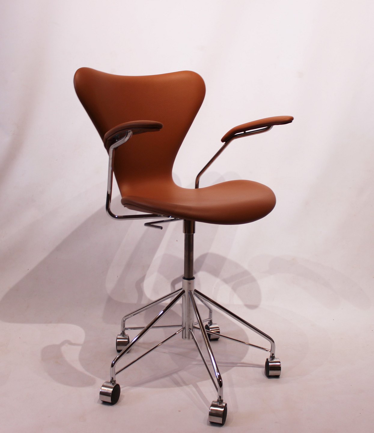 The Syver office chair, model 3217, with armrests and swivel function, is an icon in modern furniture design. It was created by renowned Danish architect and designer Arne Jacobsen in the 1950s and has since become one of his most iconic creations. Manufactured by the renowned Danish furniture company Fritz Hansen, known for their focus on quality and craftsmanship, the Syver office chair represents a perfect example of Scandinavian design aesthetics and functionality.